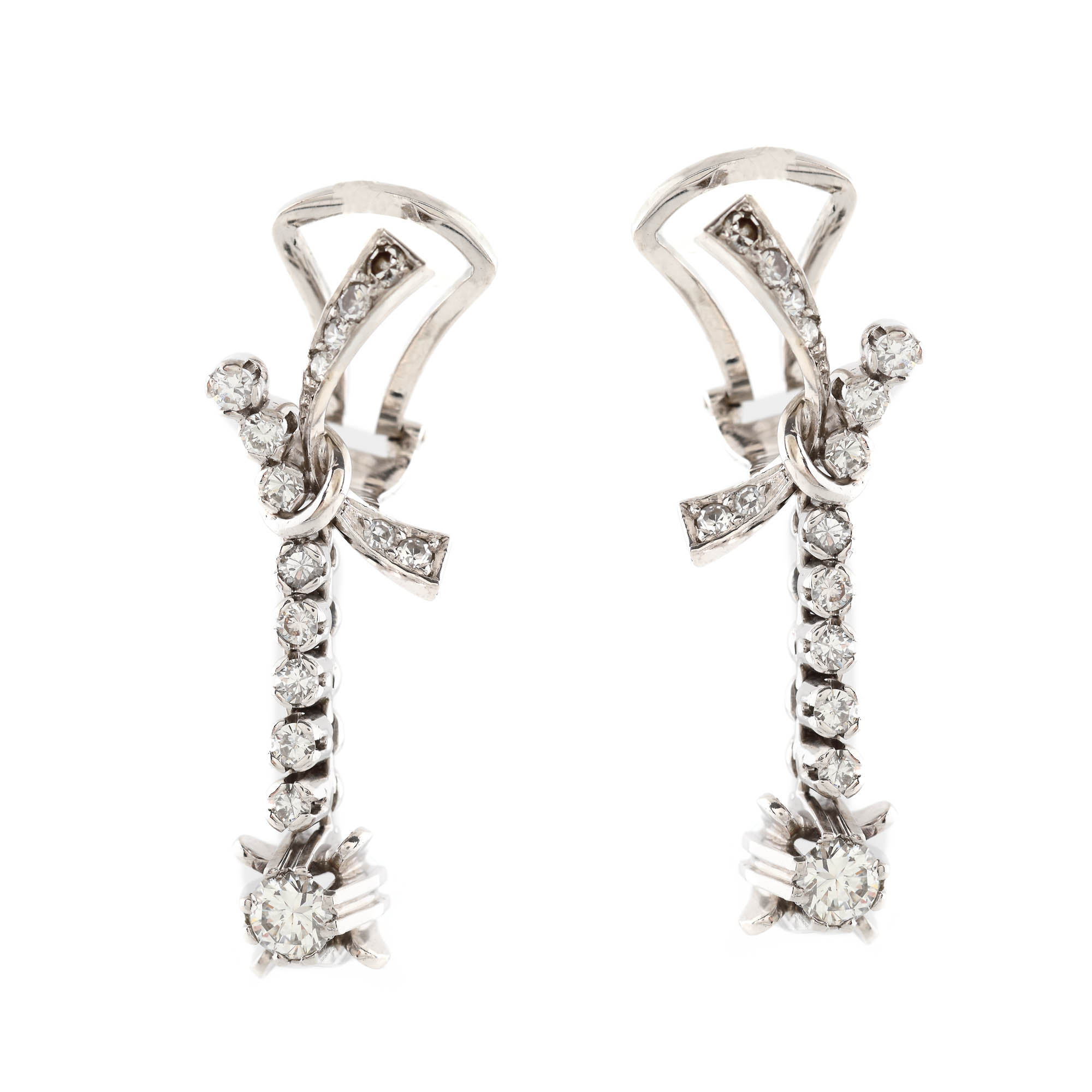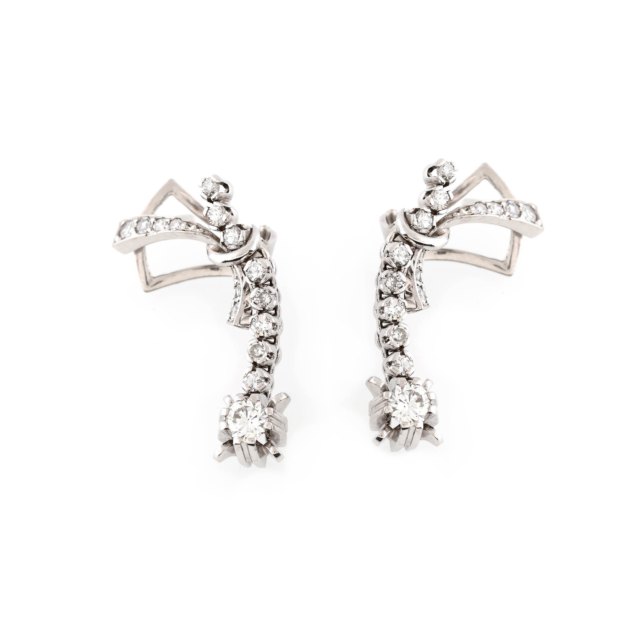 63. Pereche de cercei din aur alb, decorată cu diamante