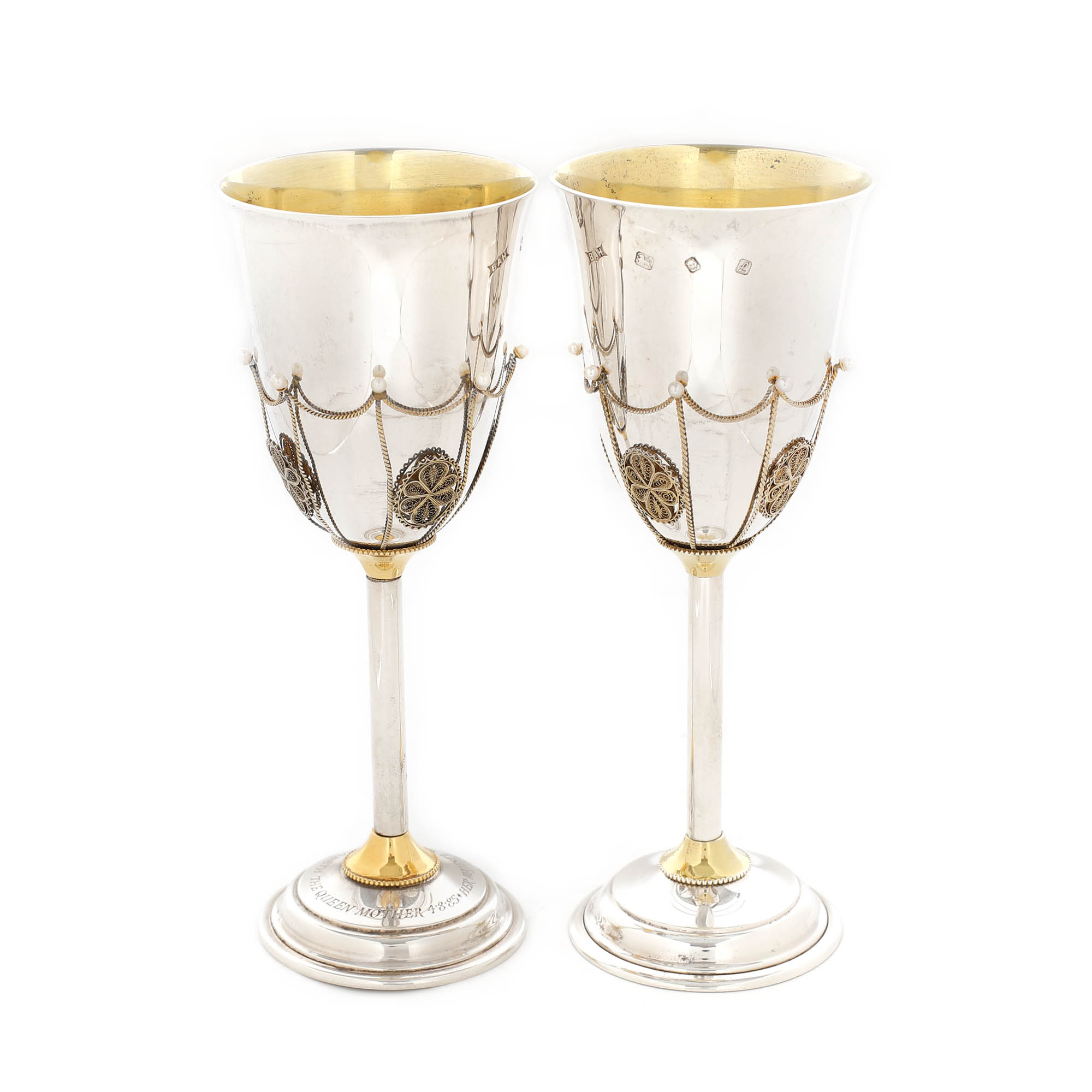 69. Pereche de pahare din argint, parțial aurit, cu decor filigranat [1985]