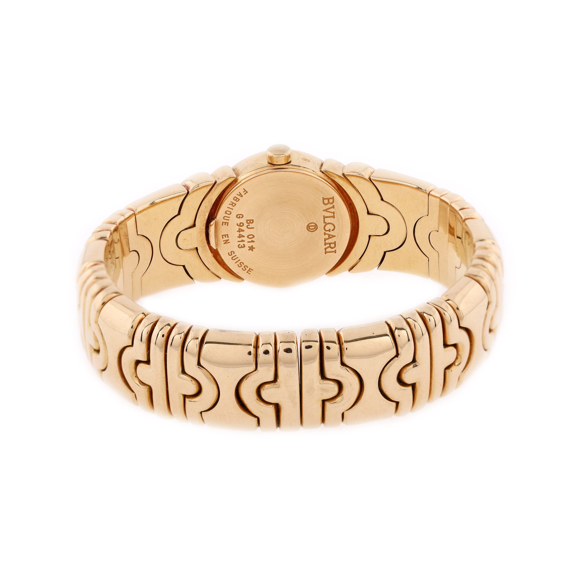 Ceas Bvlgari Parentesi, de mână, de damă, referință BJ01, mecanism quartz. Cadran pavat cu diamante. Brățară din aur, fără închidere.