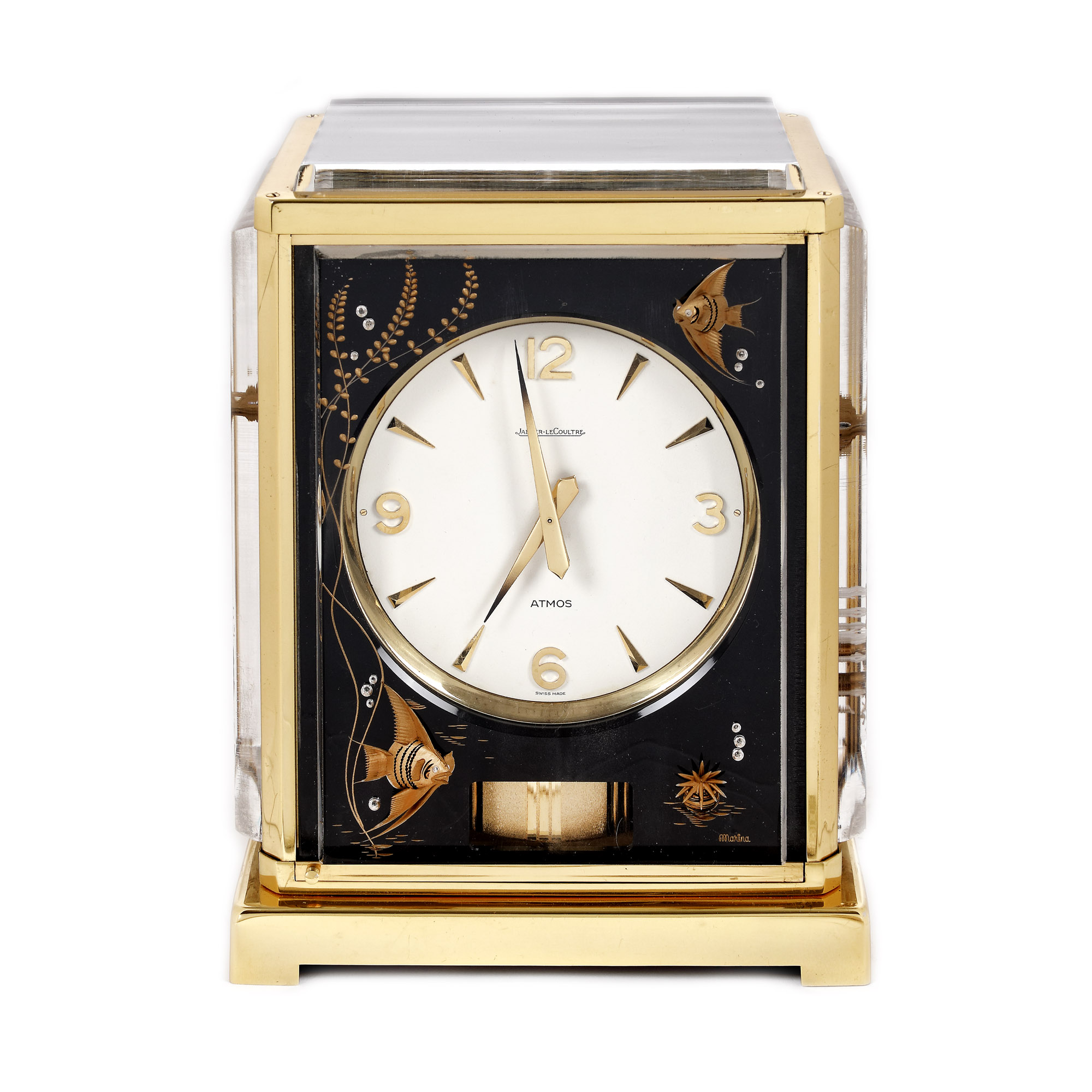 84. Ceas Jaeger LeCoultre Marina, din metal aurit, pentru birou, însoțit de cutia originală [Cca. 1968]