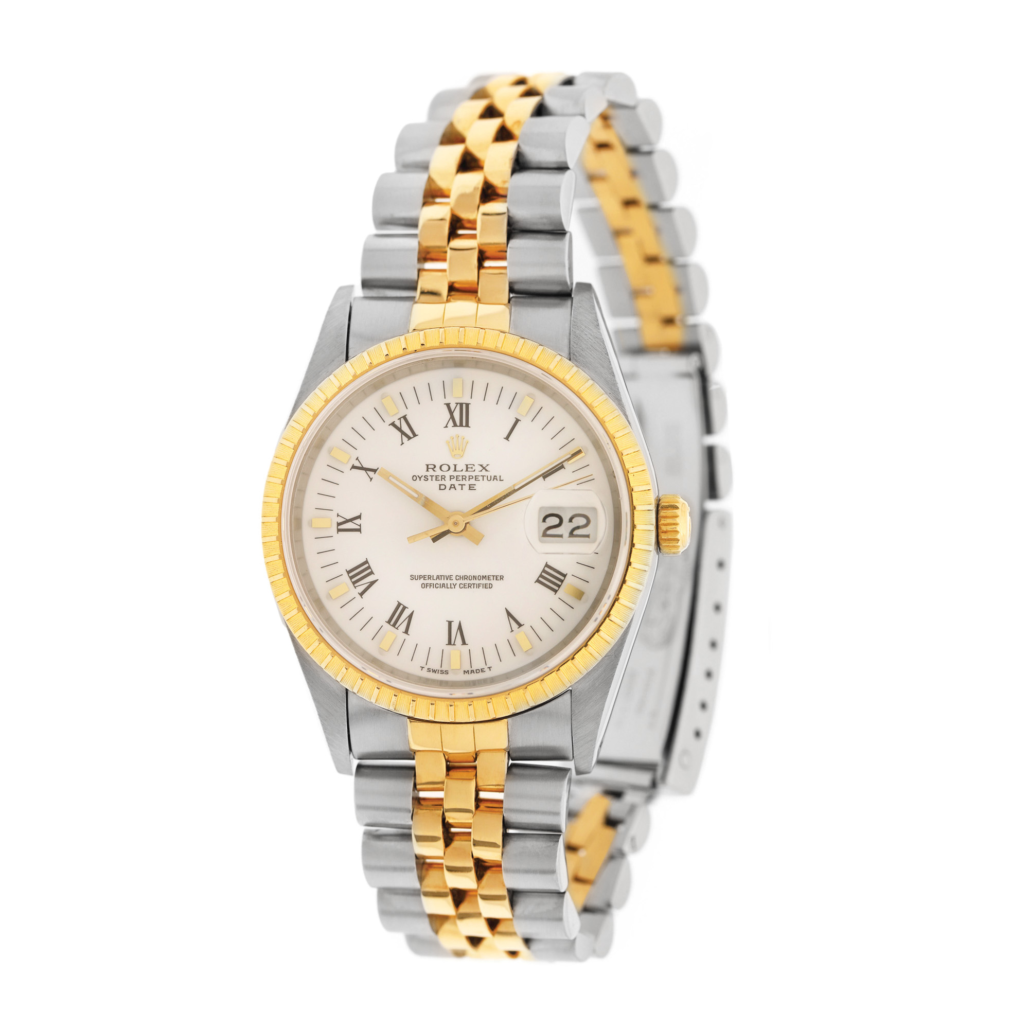 73. Ceas Rolex Oyster Perpetual Date, din aur și oțel, de mână, unisex