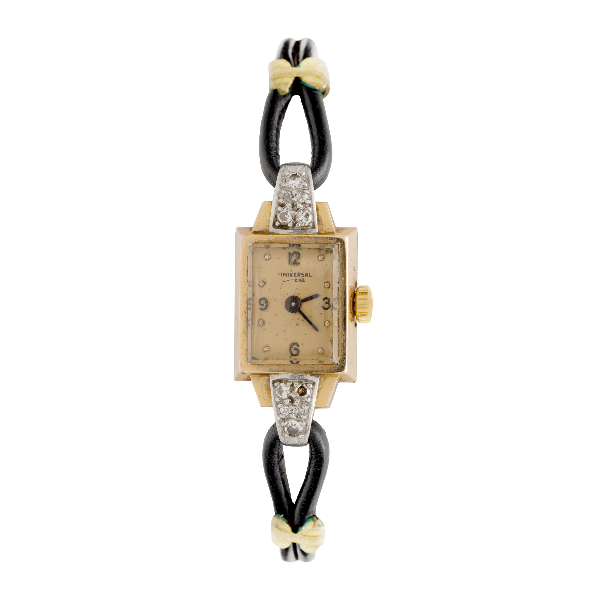 72. Ceas Universal Genève, din aur și platină, cu diamante, de mână, de damă [Cca. 1930]