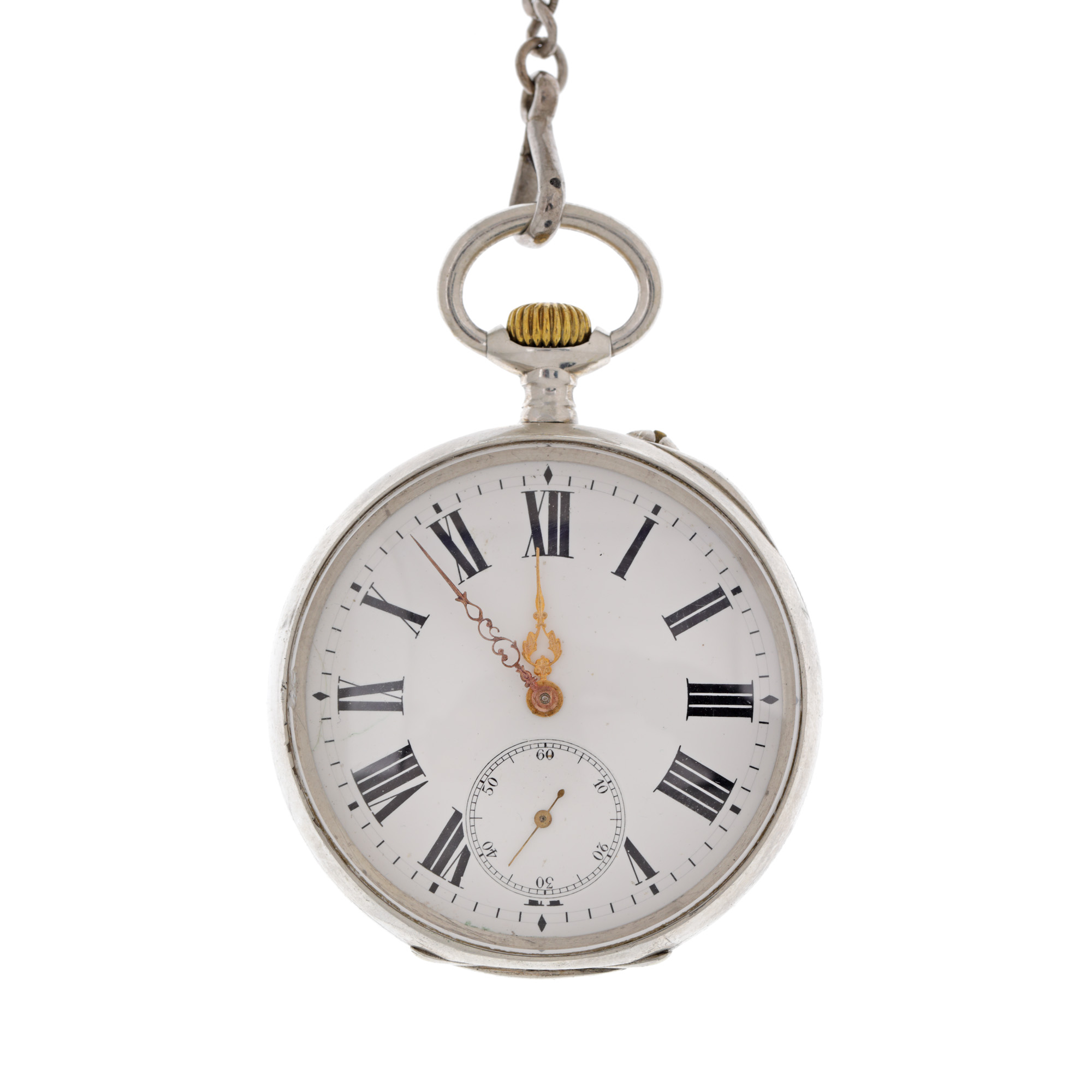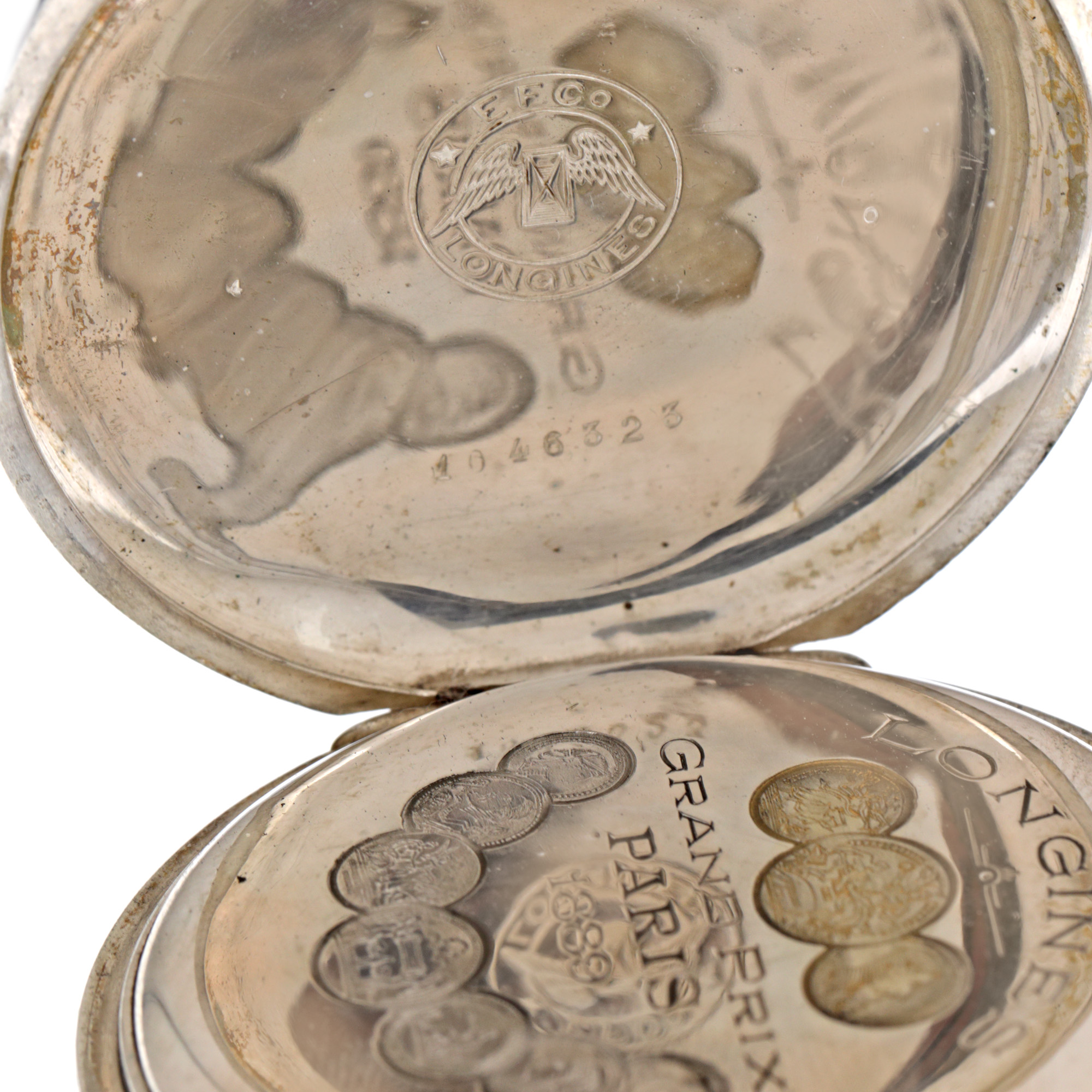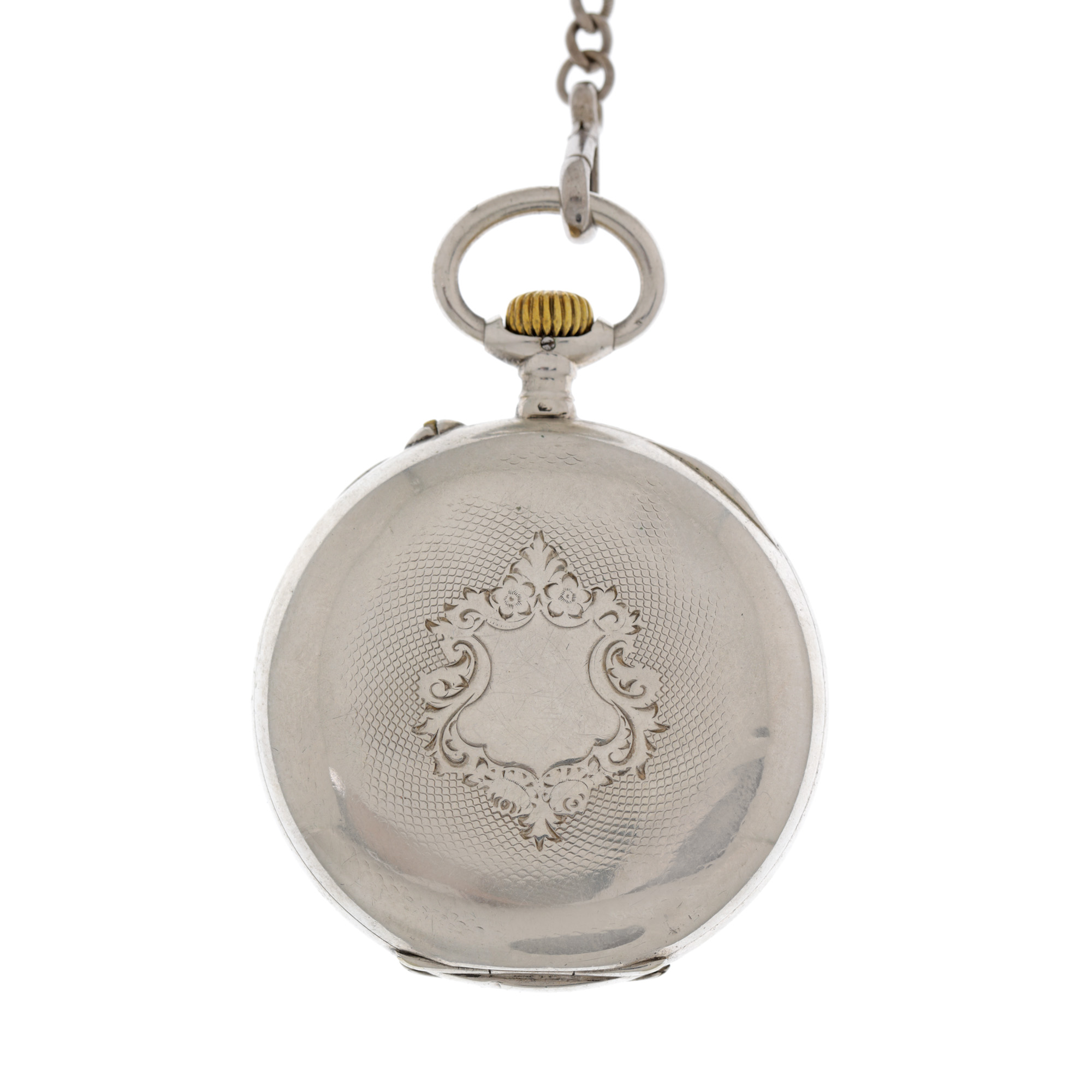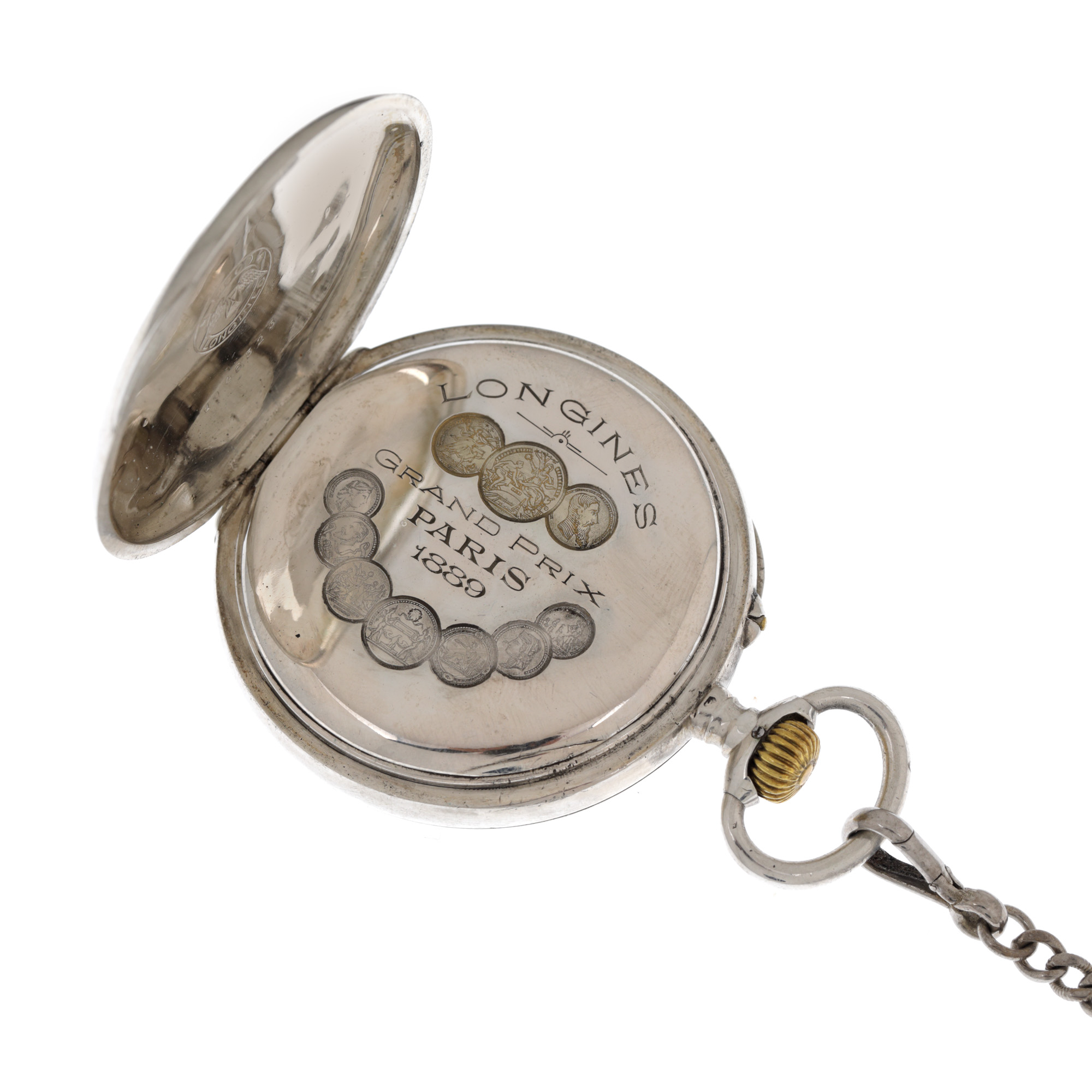 91. Ceas Longines Grand Prix, din argint, de buzunar, însoțit de lanț din argint [Cca. 1940]