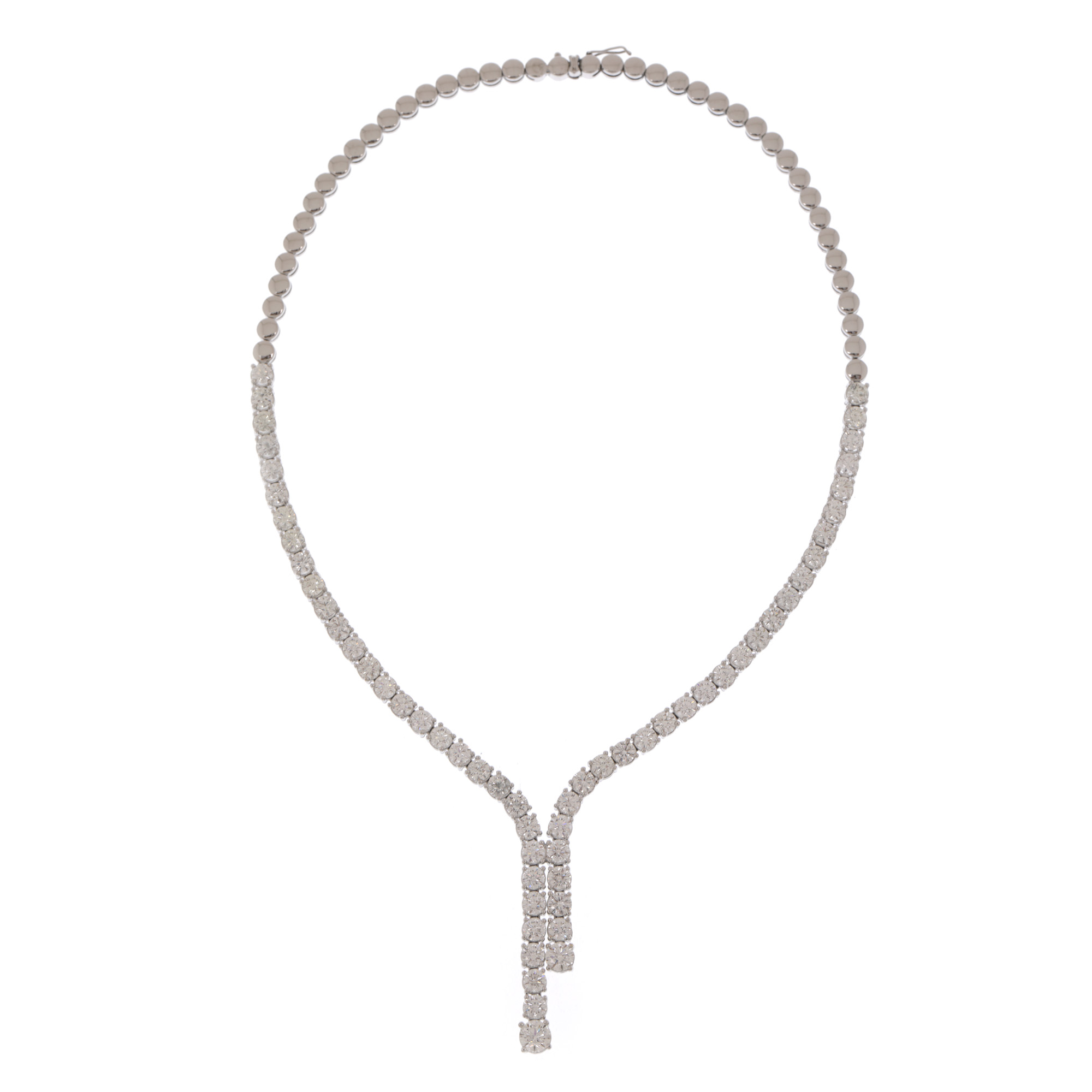 98. Colier tennis din aur alb, decorat cu diamante