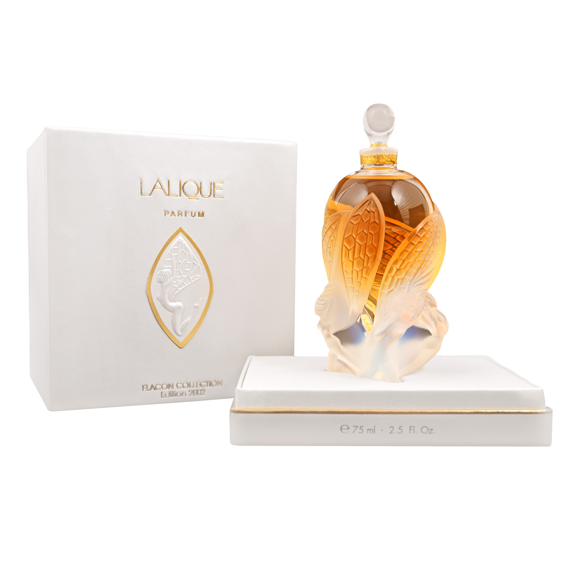 104. Flacon de parfum Lalique, decorat cu nimfe, ediție limitată, 2002, în cutia originală, însoțit de certificat