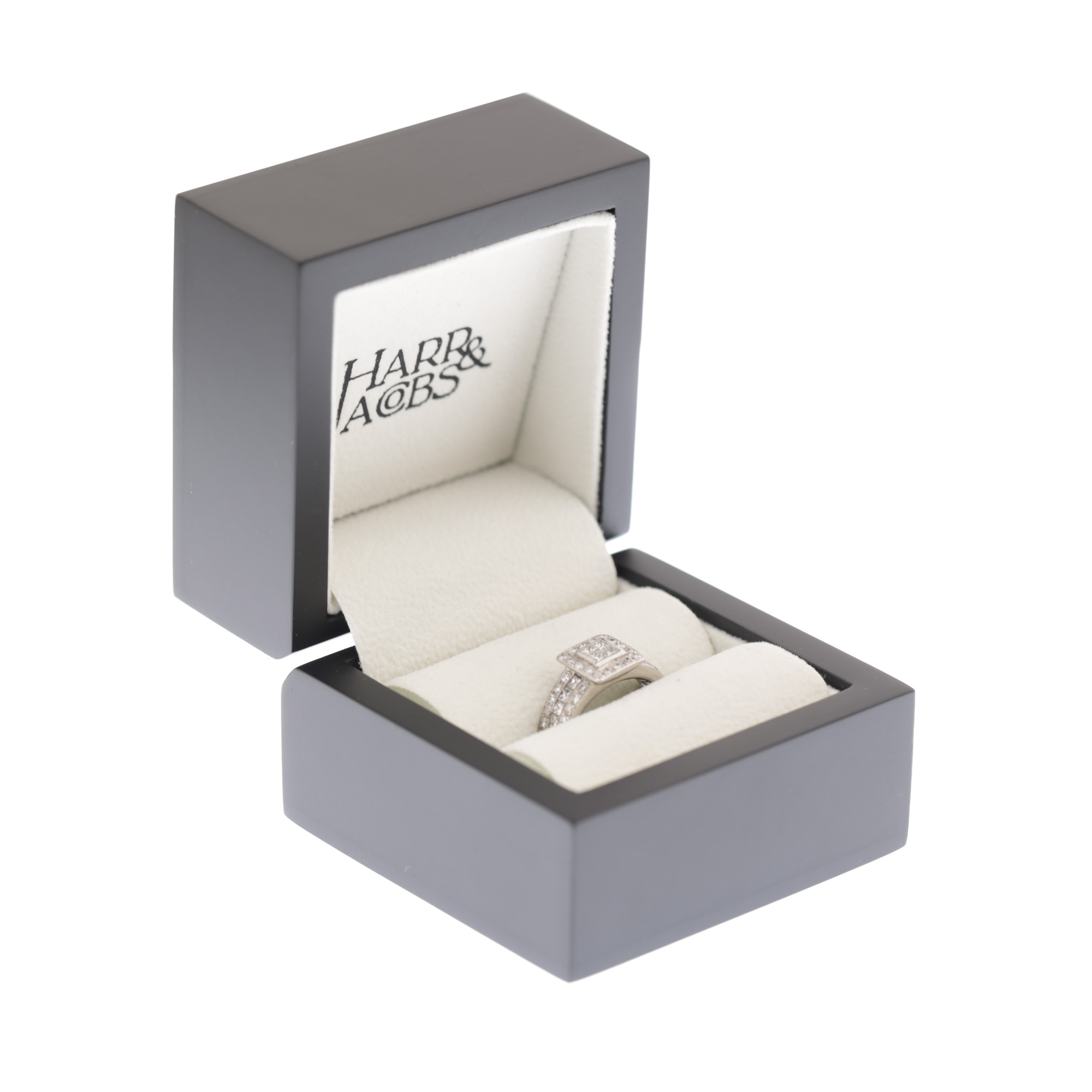75. Inel Harr & Jacobs din aur alb, decorat cu diamante, însoțit de certificat și cutia originală