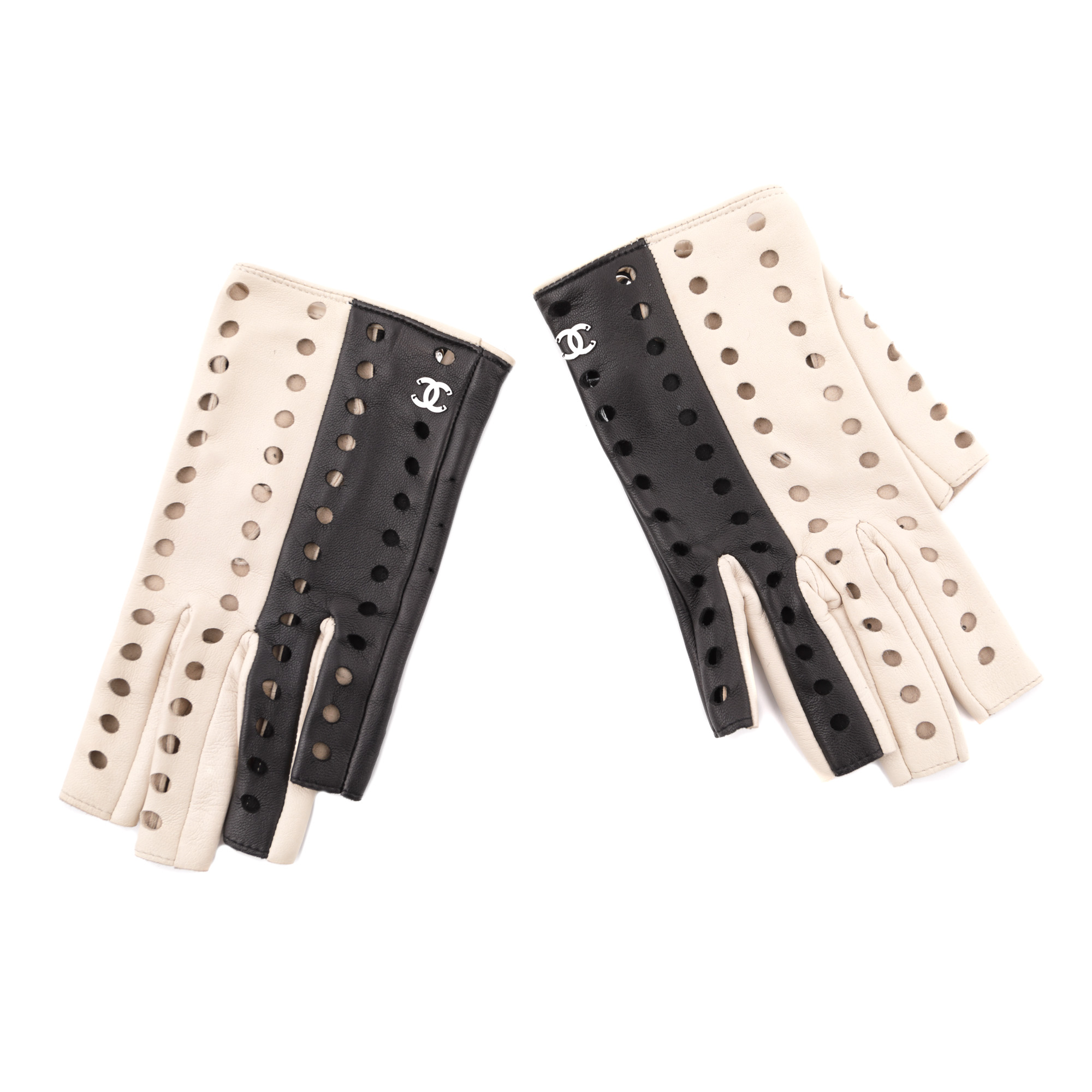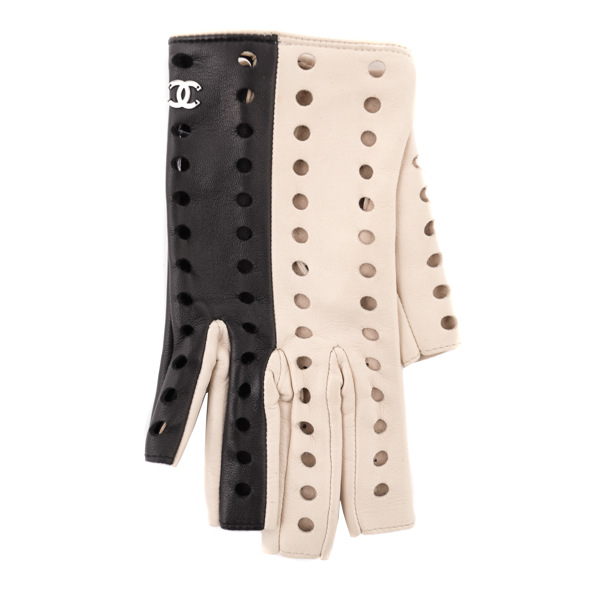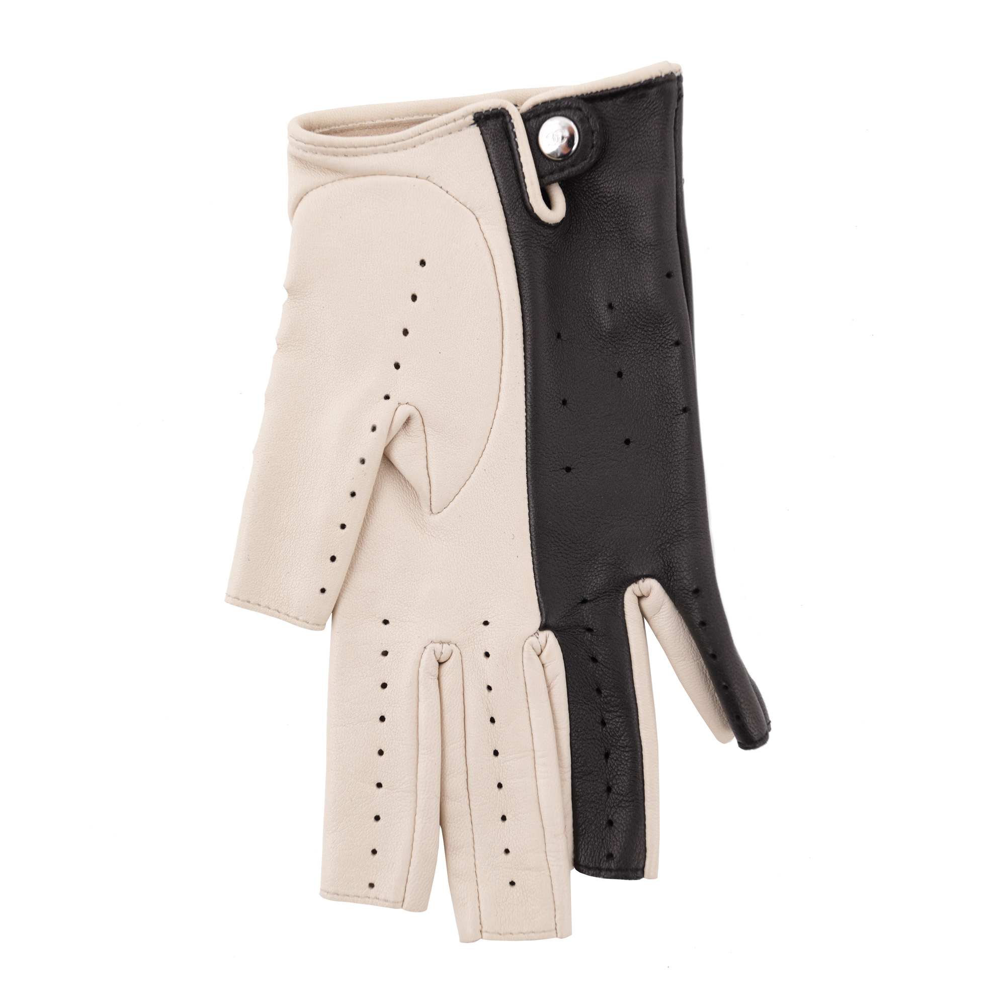 102. Pereche de mănuși de condus Chanel, "Black & White", din piele