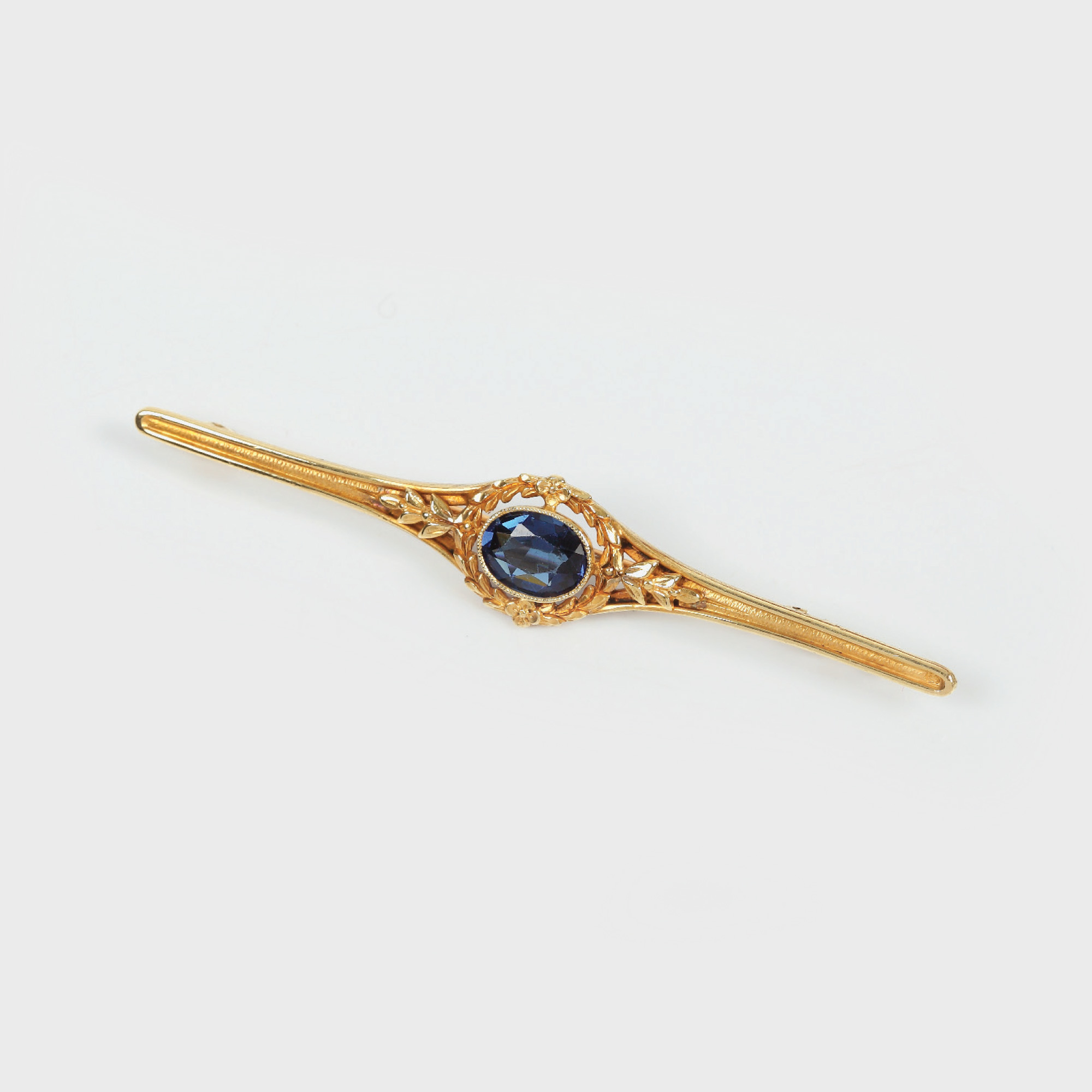 aur galben 18 k, safir tăietură ovală cca. 2 ct, safir albastru mediu închis, claritate VS