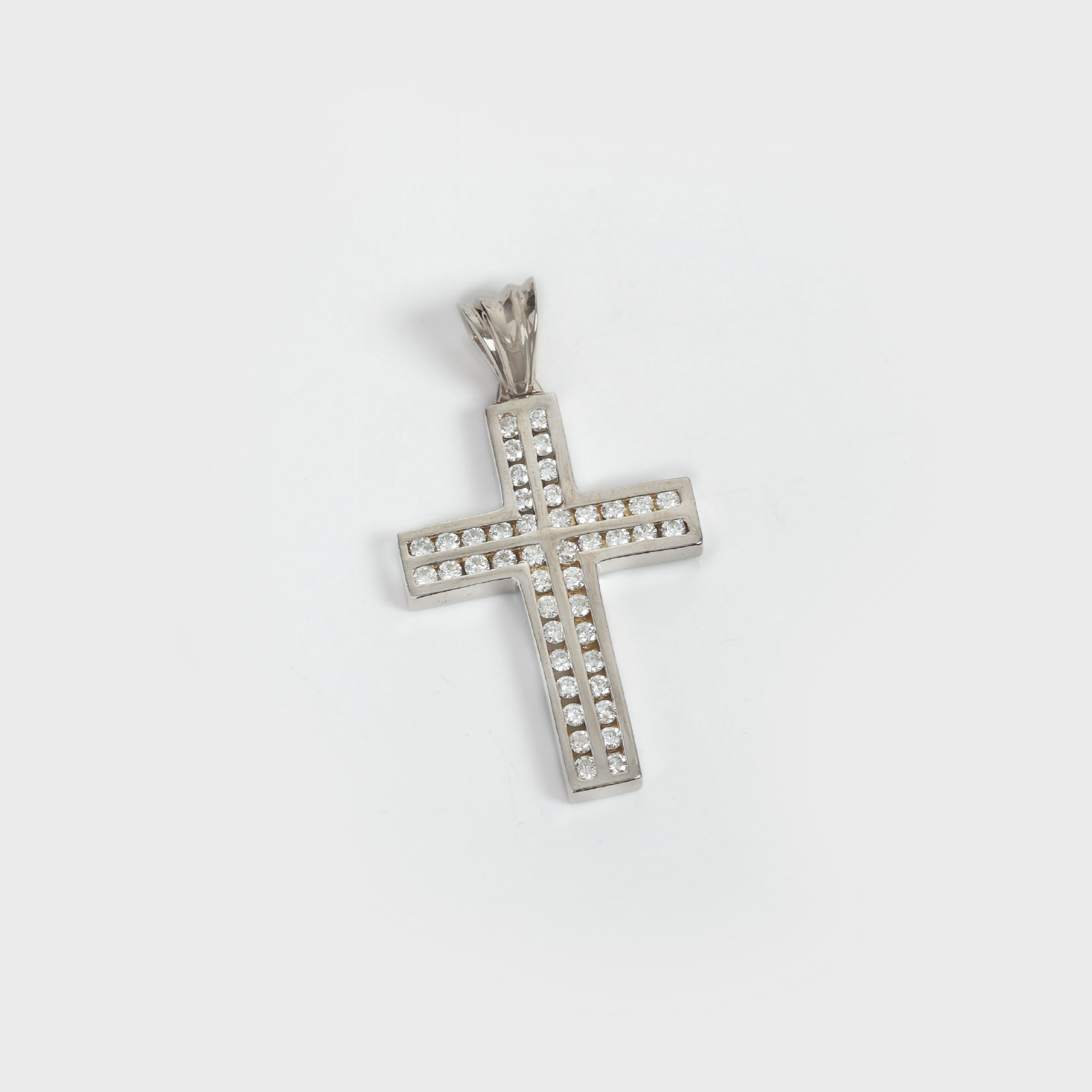 37. Impresionant pandantiv-cruce din aur alb, decorat cu 44 de diamante