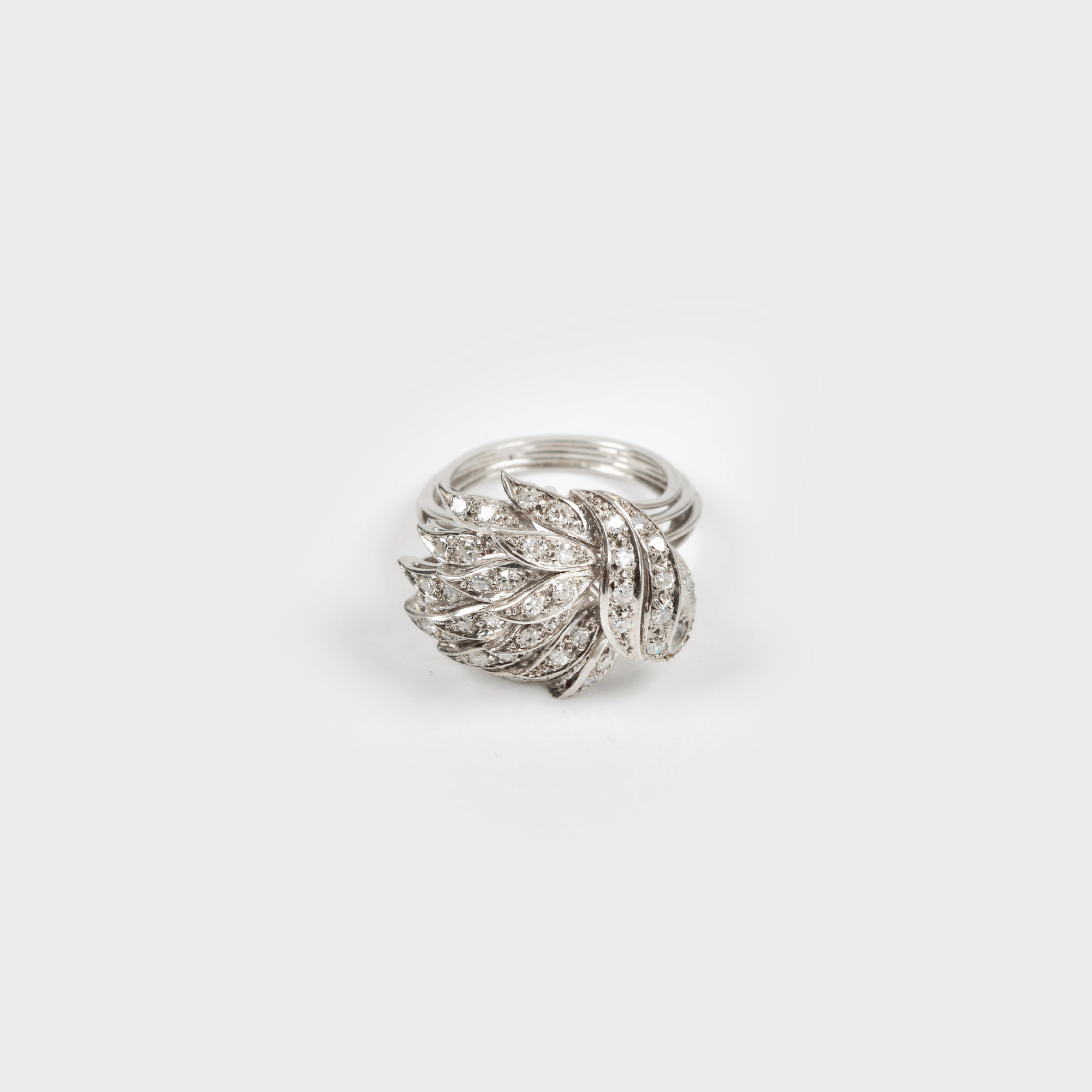 61. Luxuriant inel din platină, ornat cu frunze de diamant