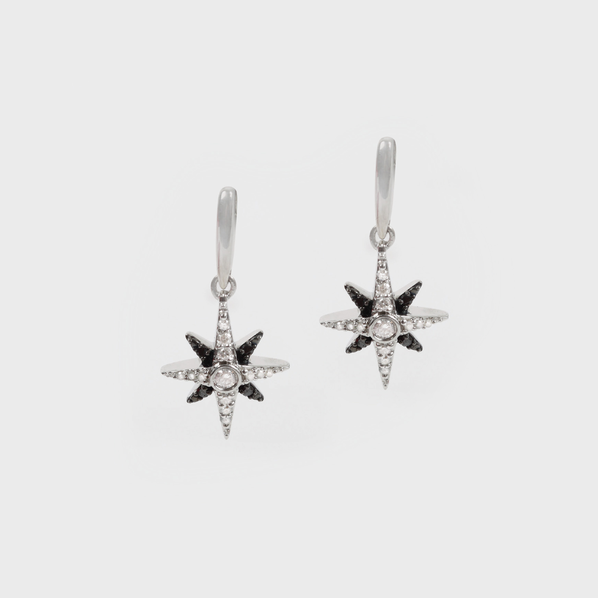 58. "Steluţe de diamante" - pereche de cercei din aur alb, pavată cu diamante albe şi negre