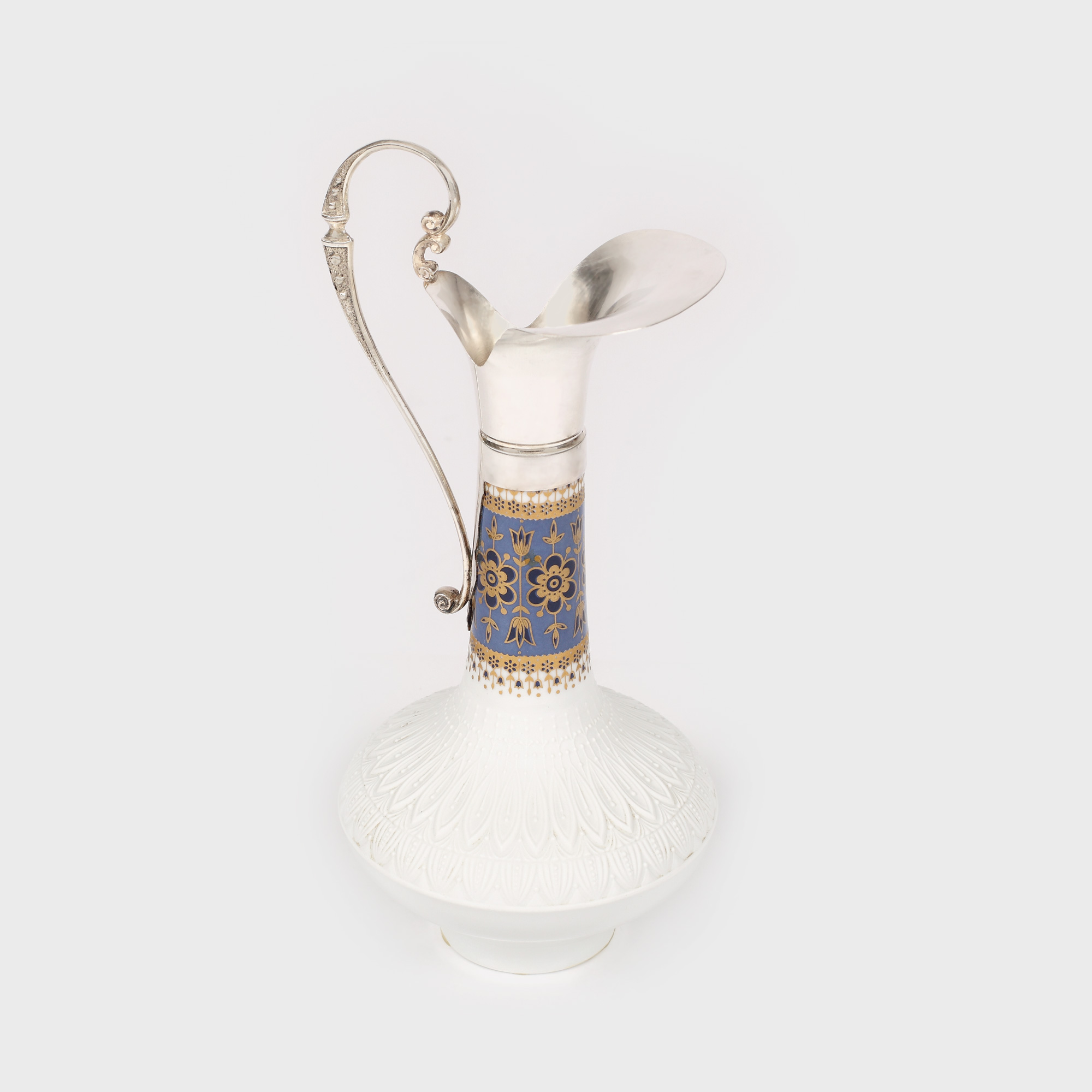 argint 800 turnat, cizelat; porţelan pictat, glazurat