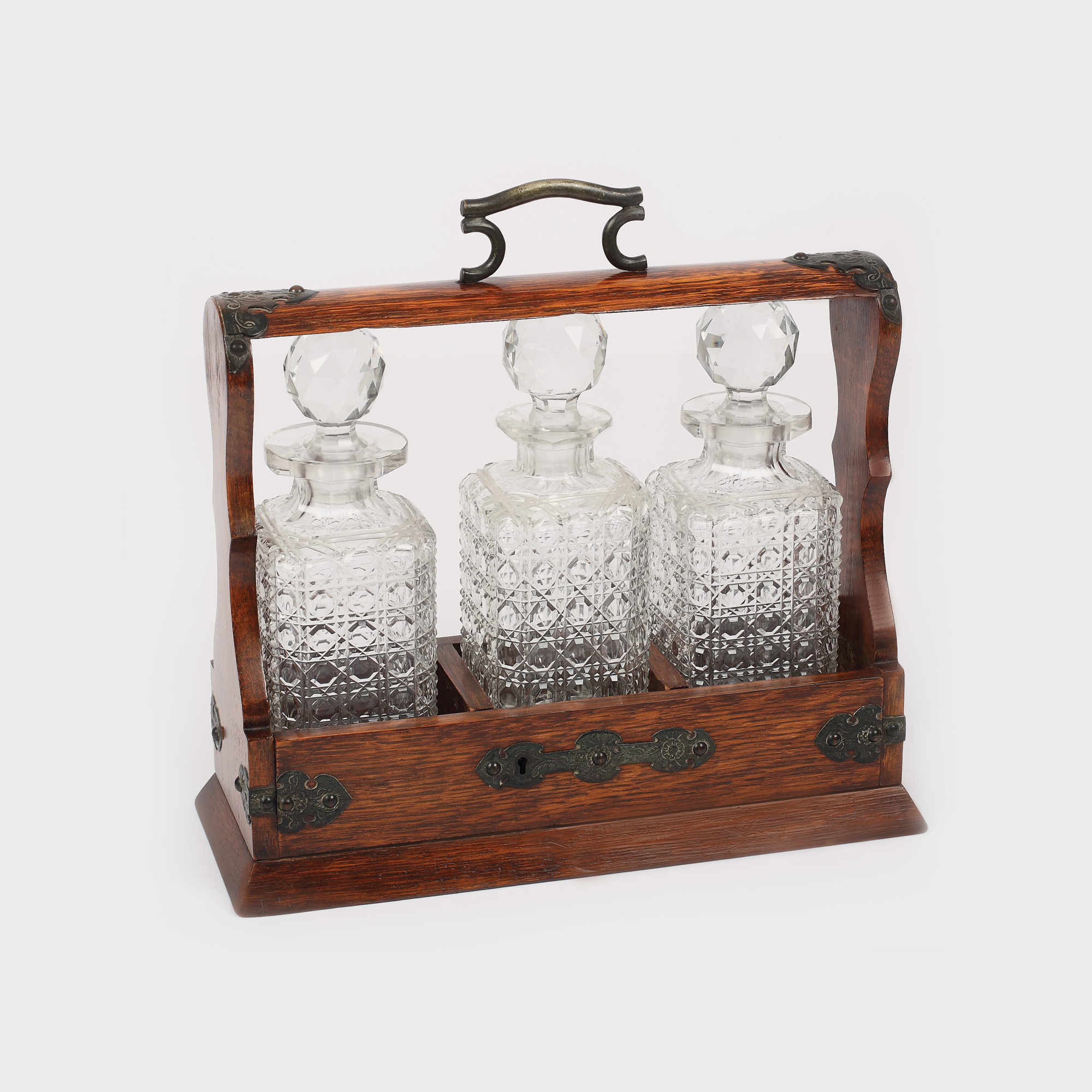 62. Trei carafe din cristal, în suport portabil, cca. 1880-1890