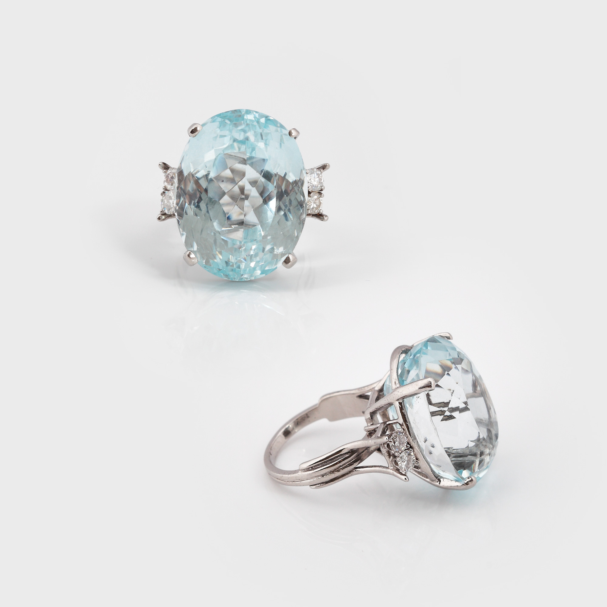 37. Spectaculos acvamarin, montat în aur alb și încadrat de diamante [sec. XX]
