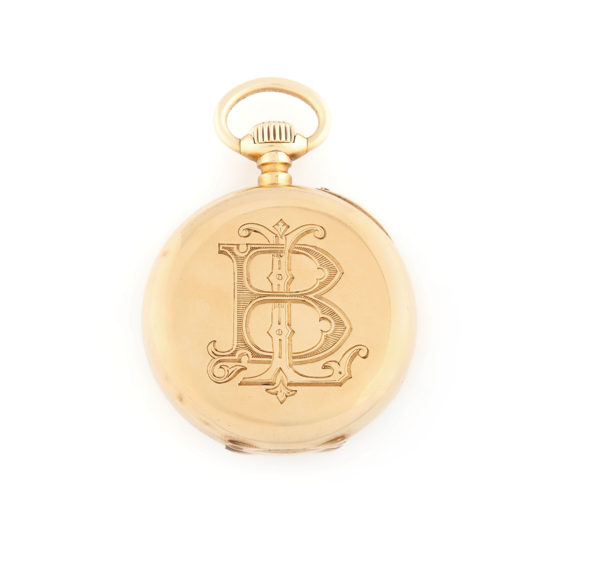 Ceas Le Roi & Fils, de buzunar, din aur, cu două capace, 1880. Mecanism cu armare manuală, serie carcasă 492, capac gravat "LB". Cadran de culoare albă cu cifre romane și secundar la ora 6.