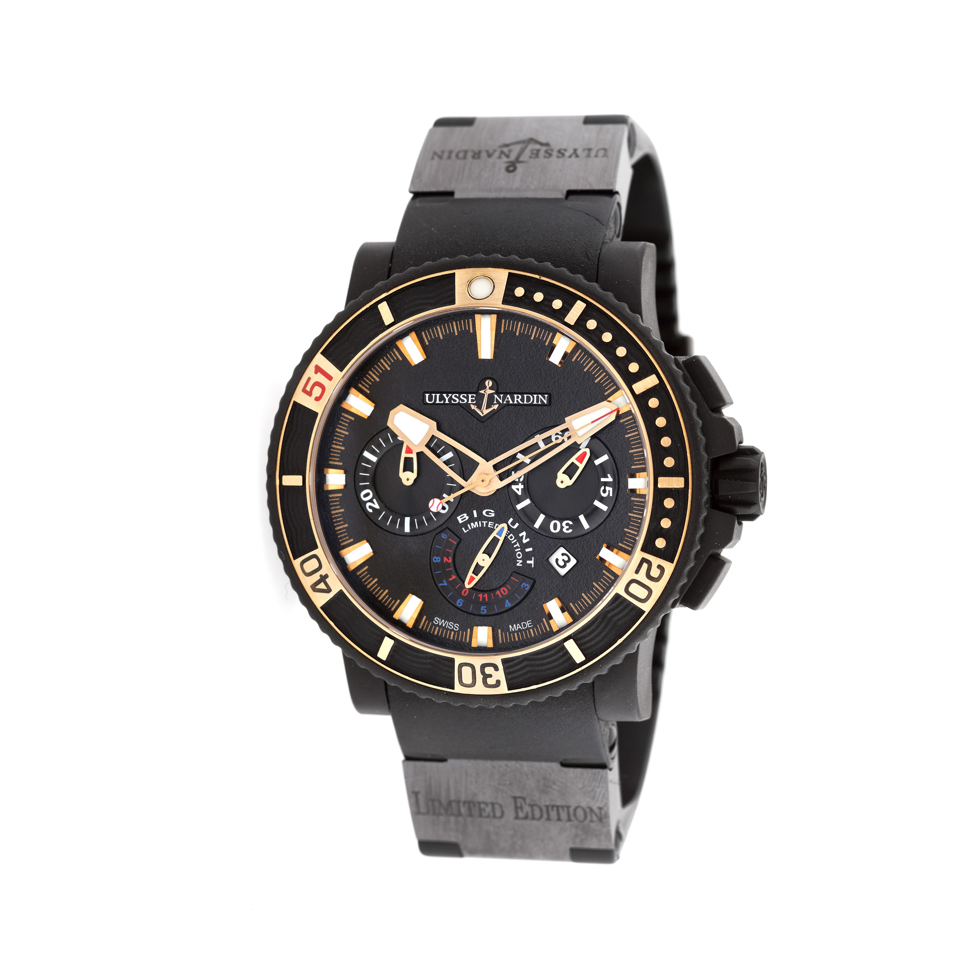 54. Ceas Ulysse Nardin Marine Diver Chronograph "Big Unit", de mână, bărbătesc, ediție limitată 63/100, însoțit de act de proveniență