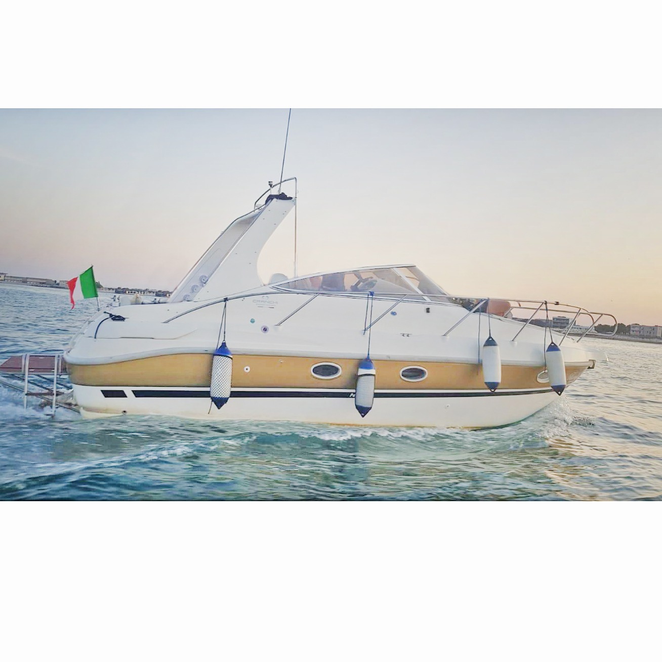 Barcă de agrement Cranchi Perla 25, echipată cu două motoare inboard Volvo Penta 4.3 Gi de 166 Kw (225 Cp) fiecare. Lungime 7,44 metri, Lățime 2,94 metri, Greutate 4900 kg Dotări: carenă cu fund dublu, sonar Raymarine, sistem audio marin Kenwood cu dublă comandă, difuzoare marine Bose, woofer marin Fusion, chiuvetă internă și externă, duș de punte, doua dormitoare, o baie, minibar, frigider, TV, lumini subacvatice RGB. Aproximativ 350 de ore de funcționare.