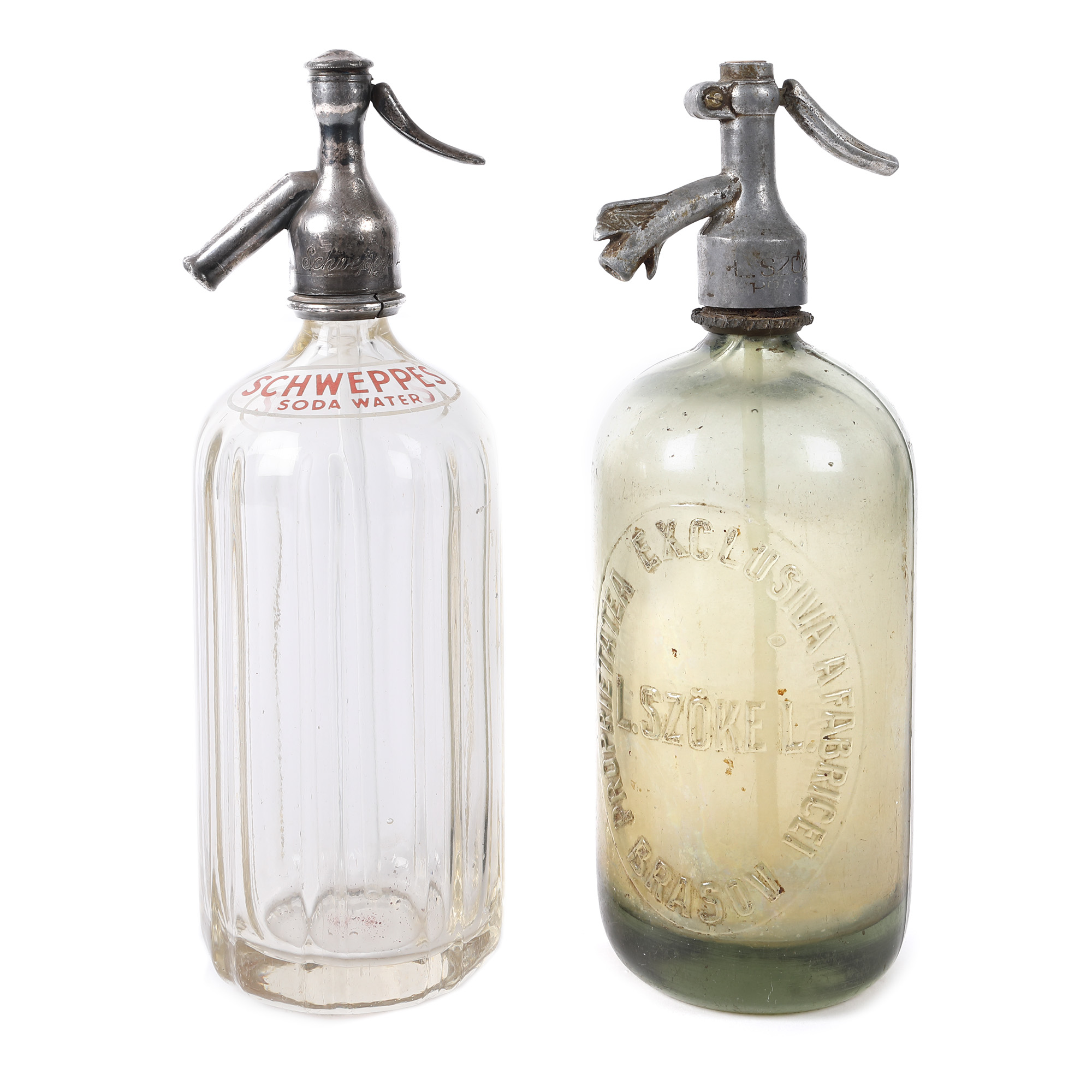 80. Lot format din două sifoane, L. Szockel Brașov și Schweppes, anii 1920
