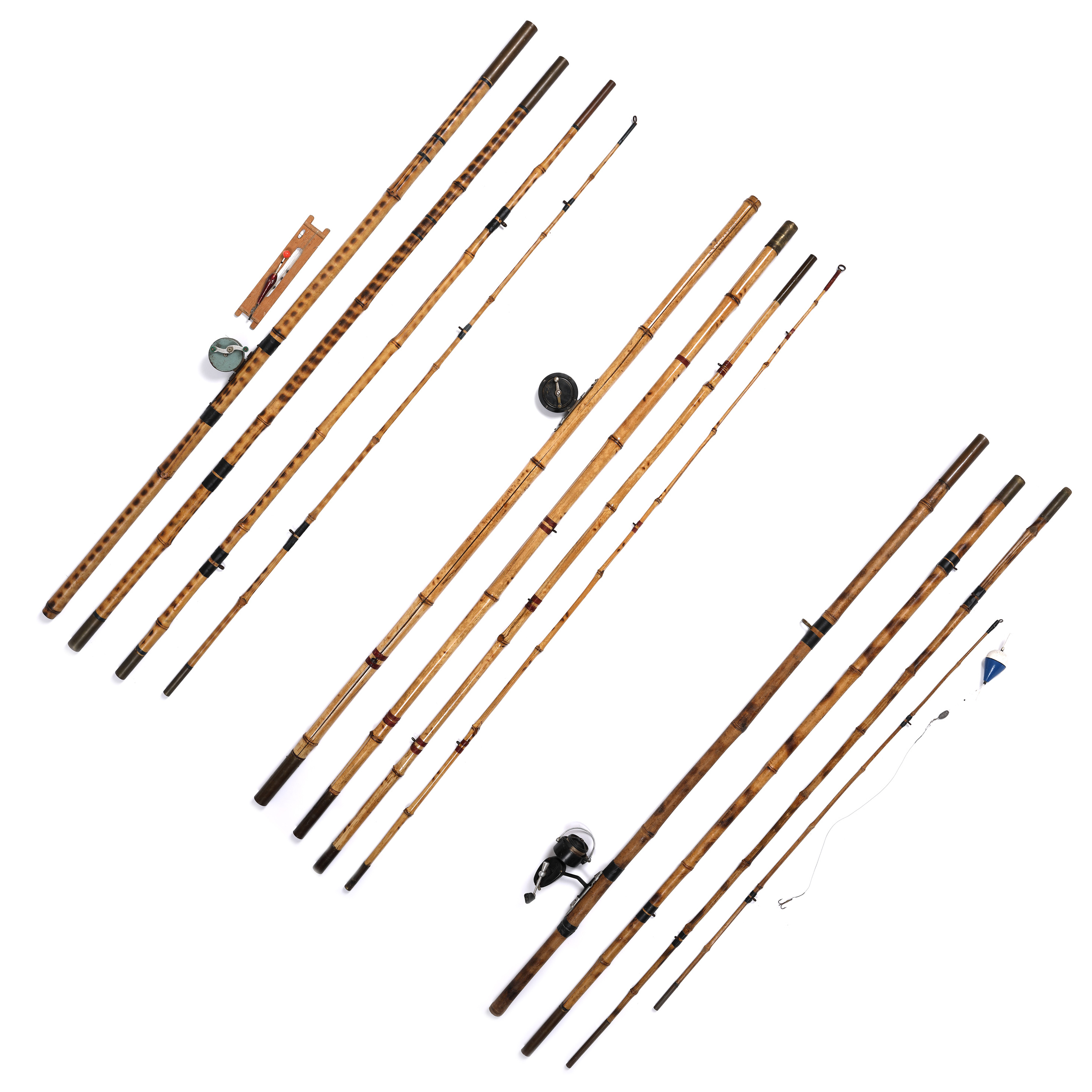 103. Lot format din opt undițe și o lansetă, din bambus, Franța, mijlocul sec. XX