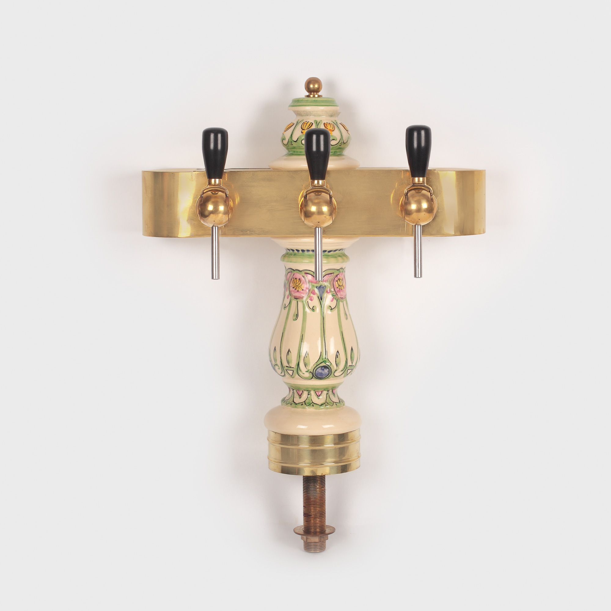 Draft în formă de T folosit pentru turnarea berii. Instalația este realizată din alamă, trunchiul este acoperit de o piesă din faianță glazurată, pictată cu motive florale. Partea superioară conține trei robineți cu mânere din ebonită și un element decorativ din aceeași faianță glazurată, pictată cu motive florale.