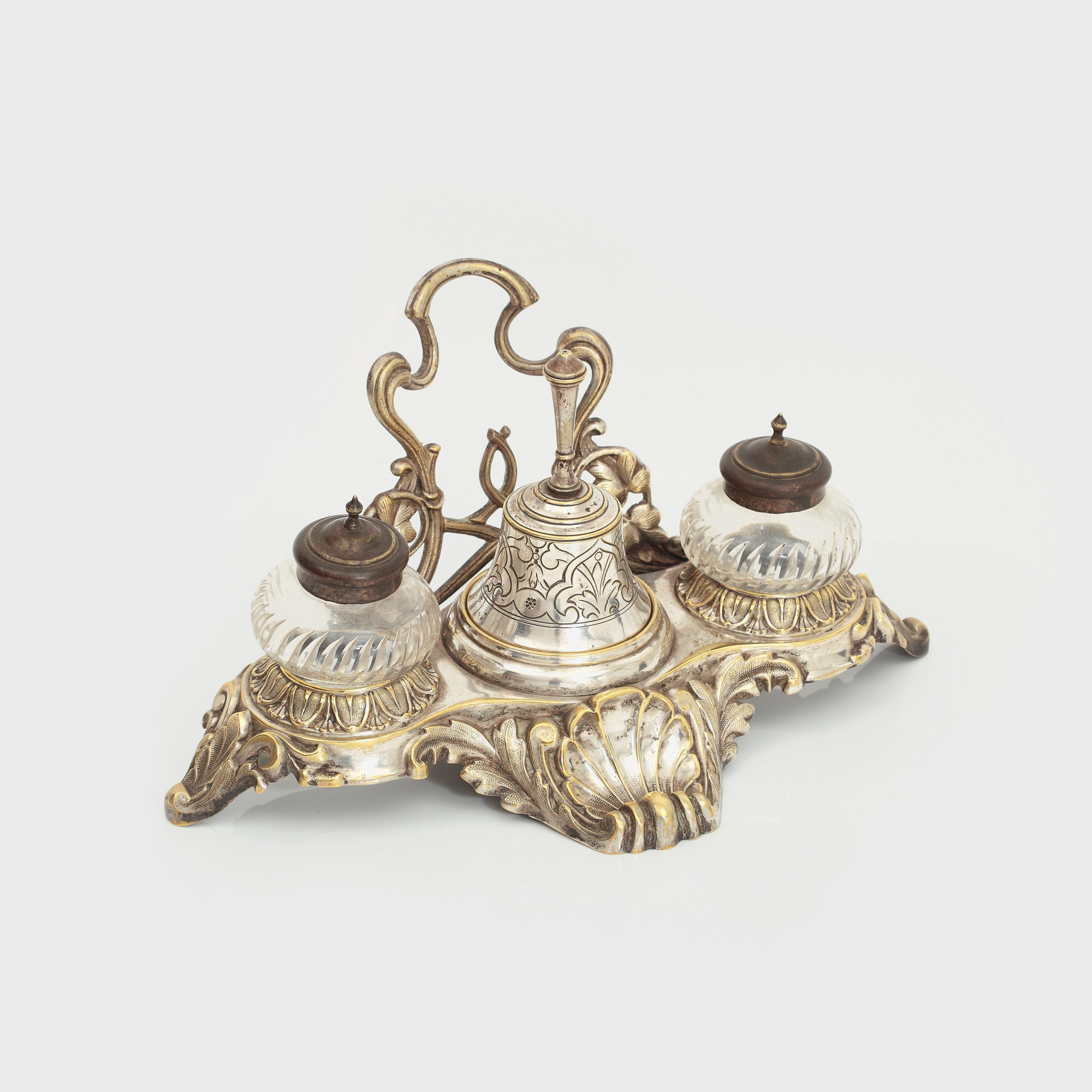 92. Inedită encrieră cu clopoţel, argintată, sfârșitul sec. XIX