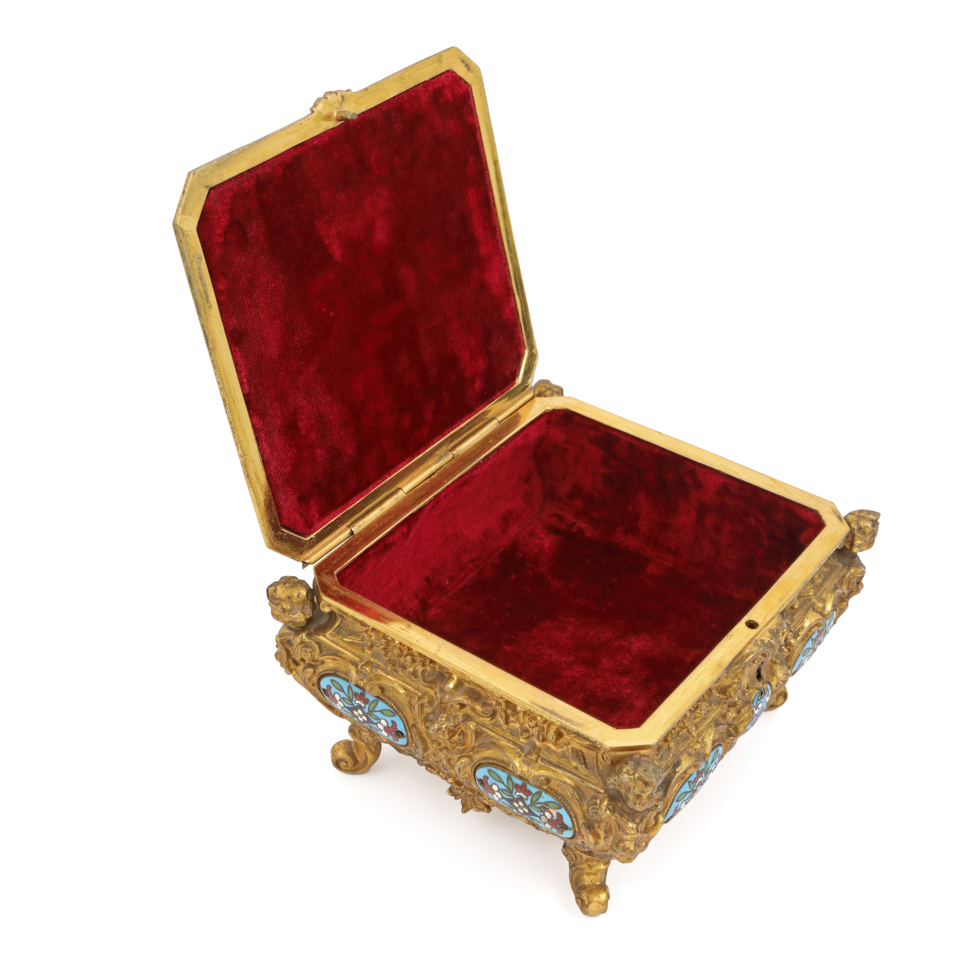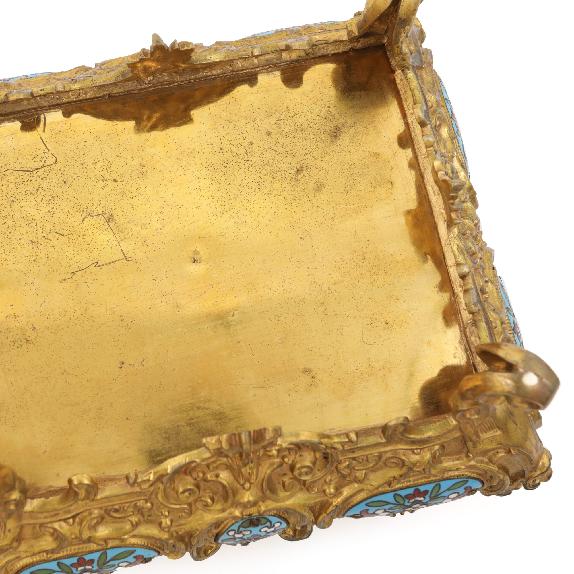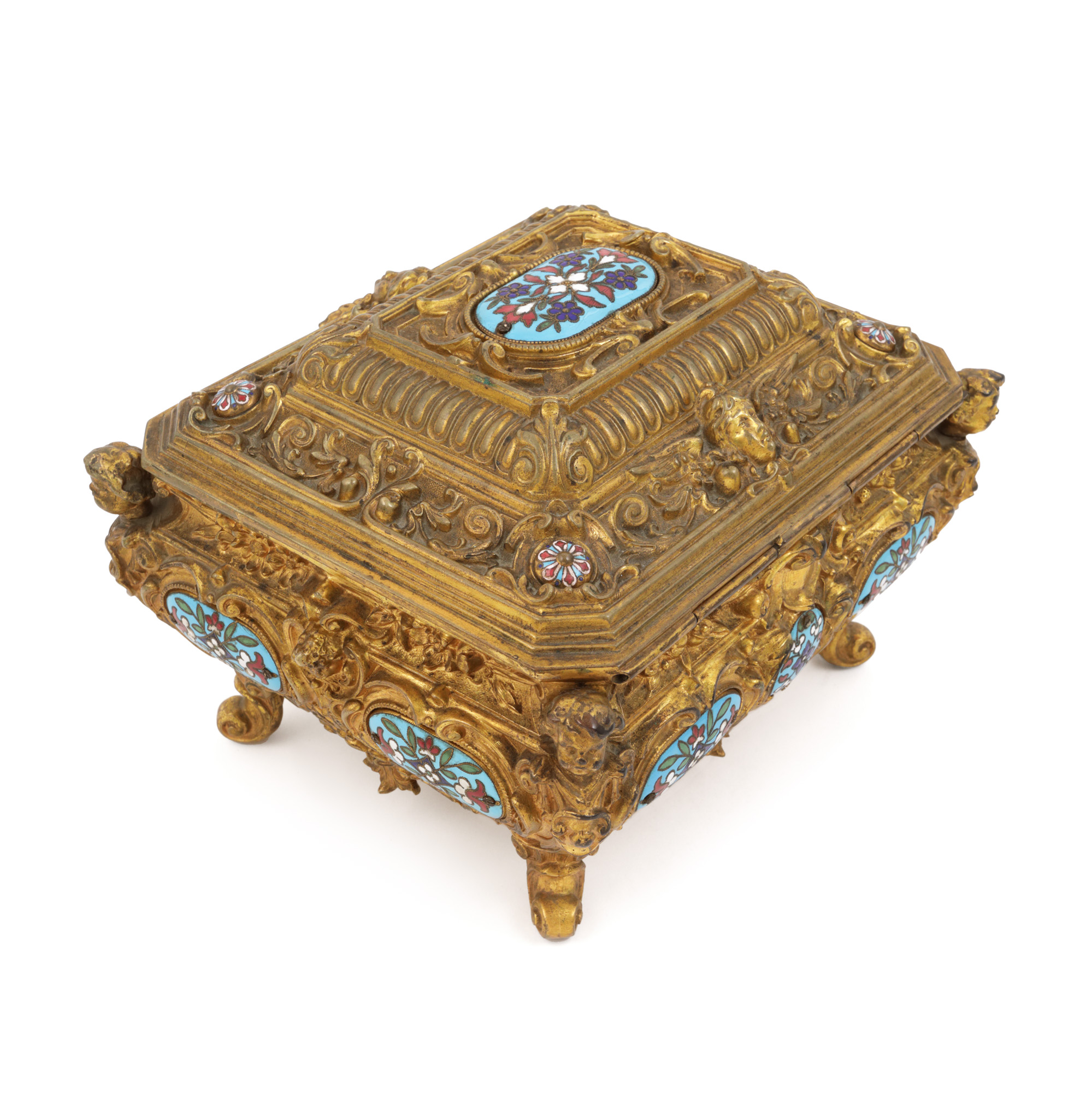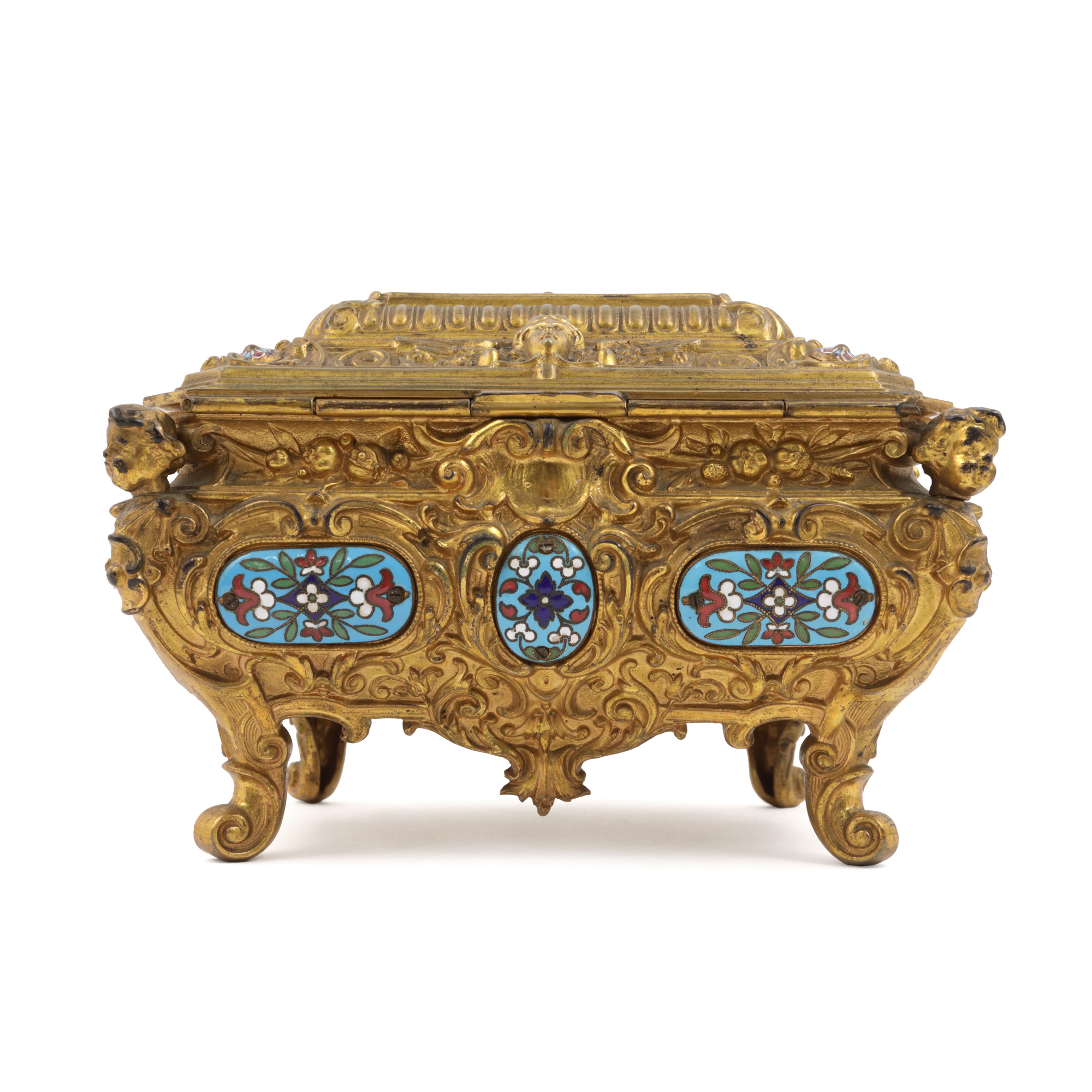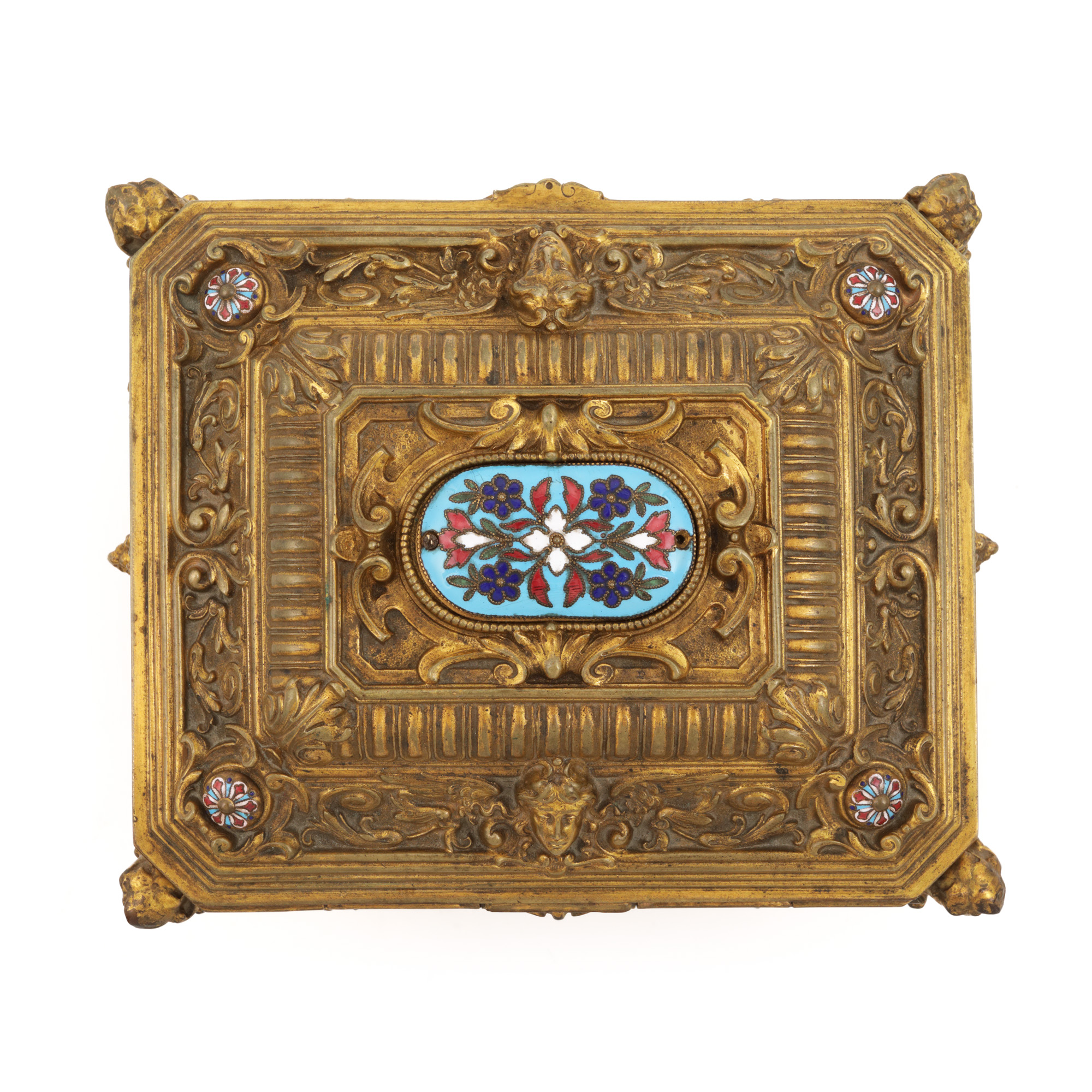 143. Cutie de bijuterii Rococo Revival, din bronz aurit decorată cu medalioane cloisonné champlevé, sfârșitul sec. XIX