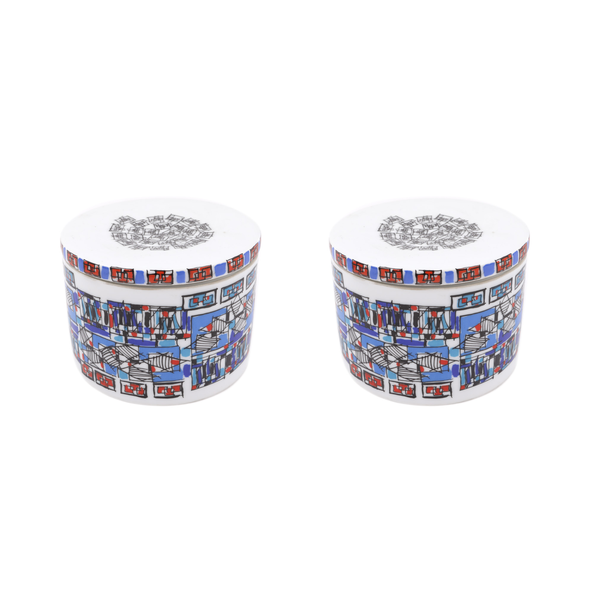 150. Pereche de cutii cu capac, din porțelan Limoges, pictate, pentru ceai, 1984
