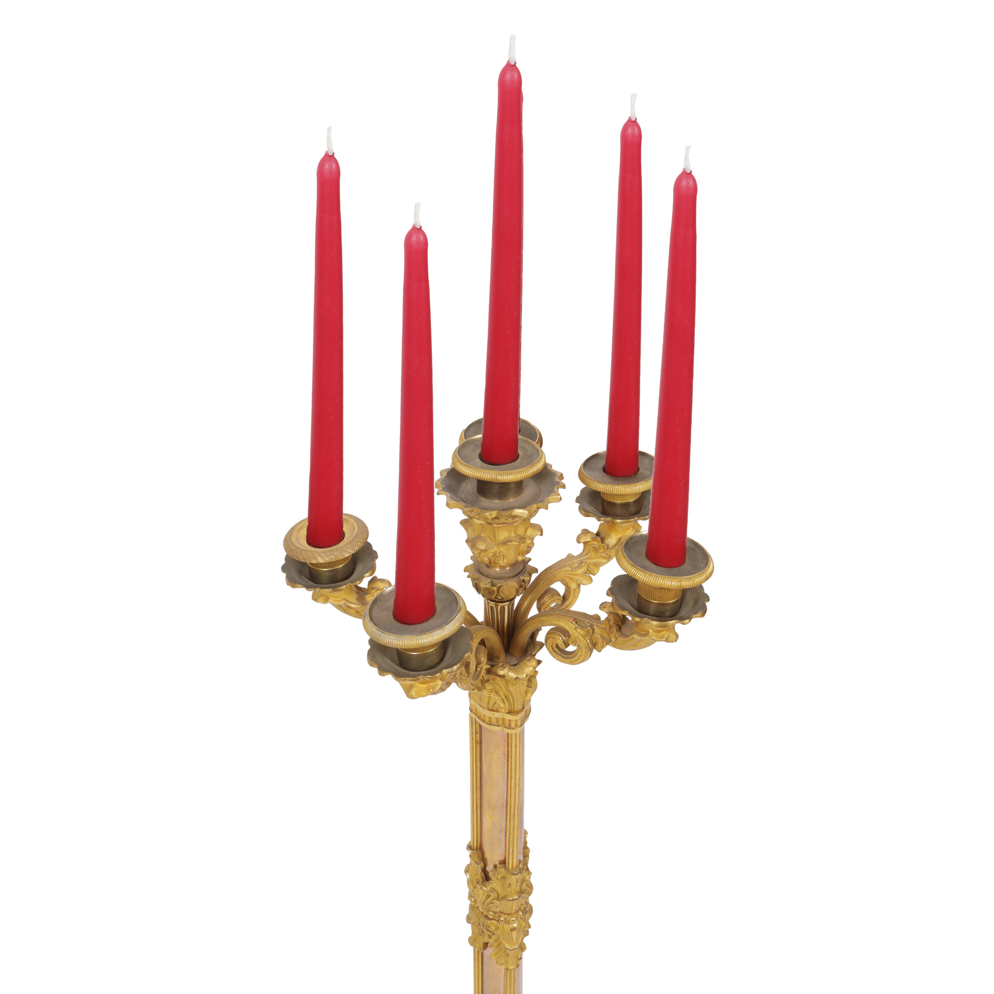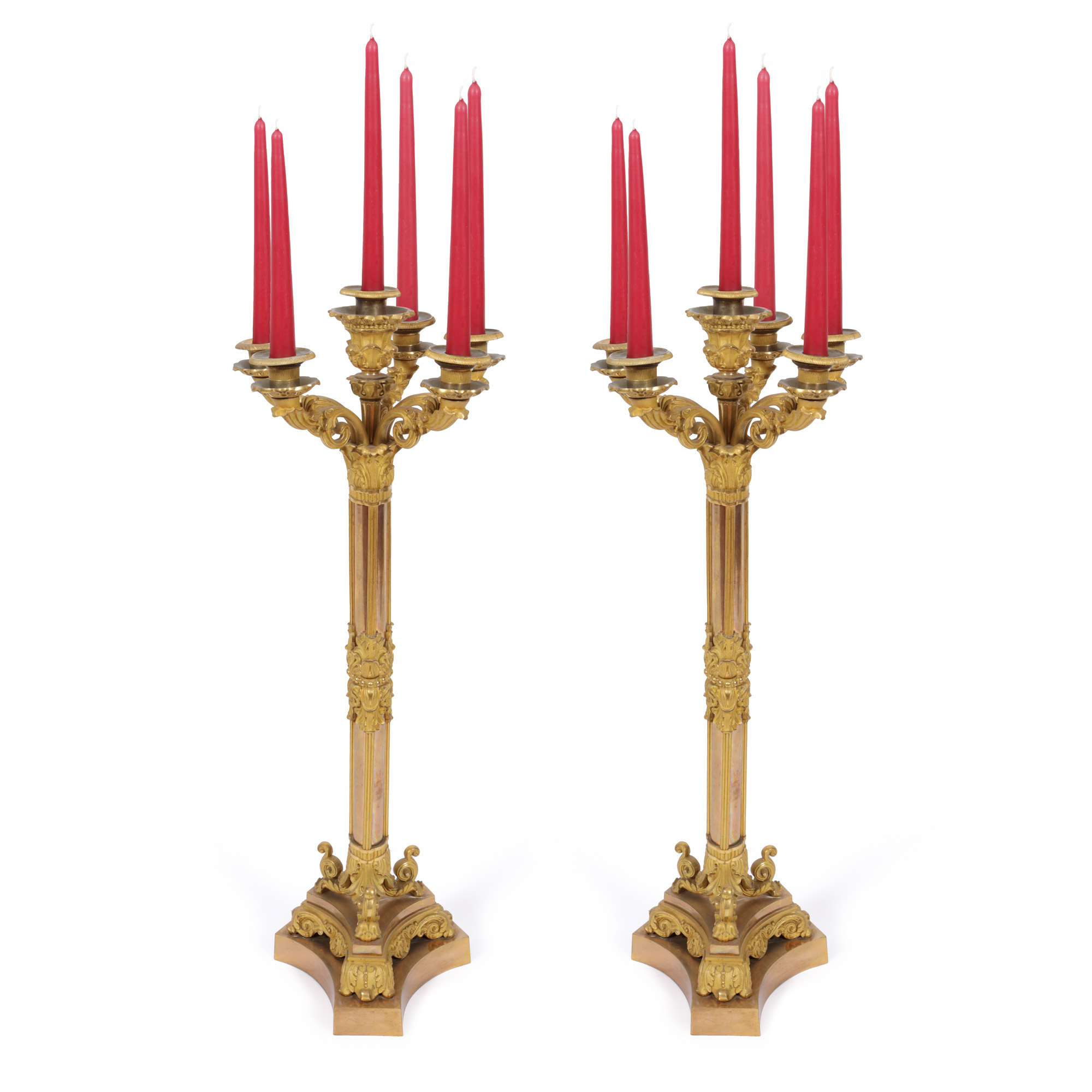 130. Pereche de sfeșnice monumentale în manieră Empire, din bronz aurit, începutul sec. XX