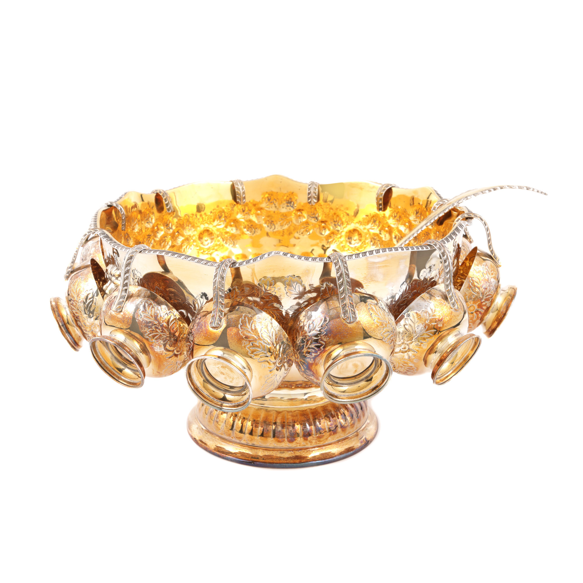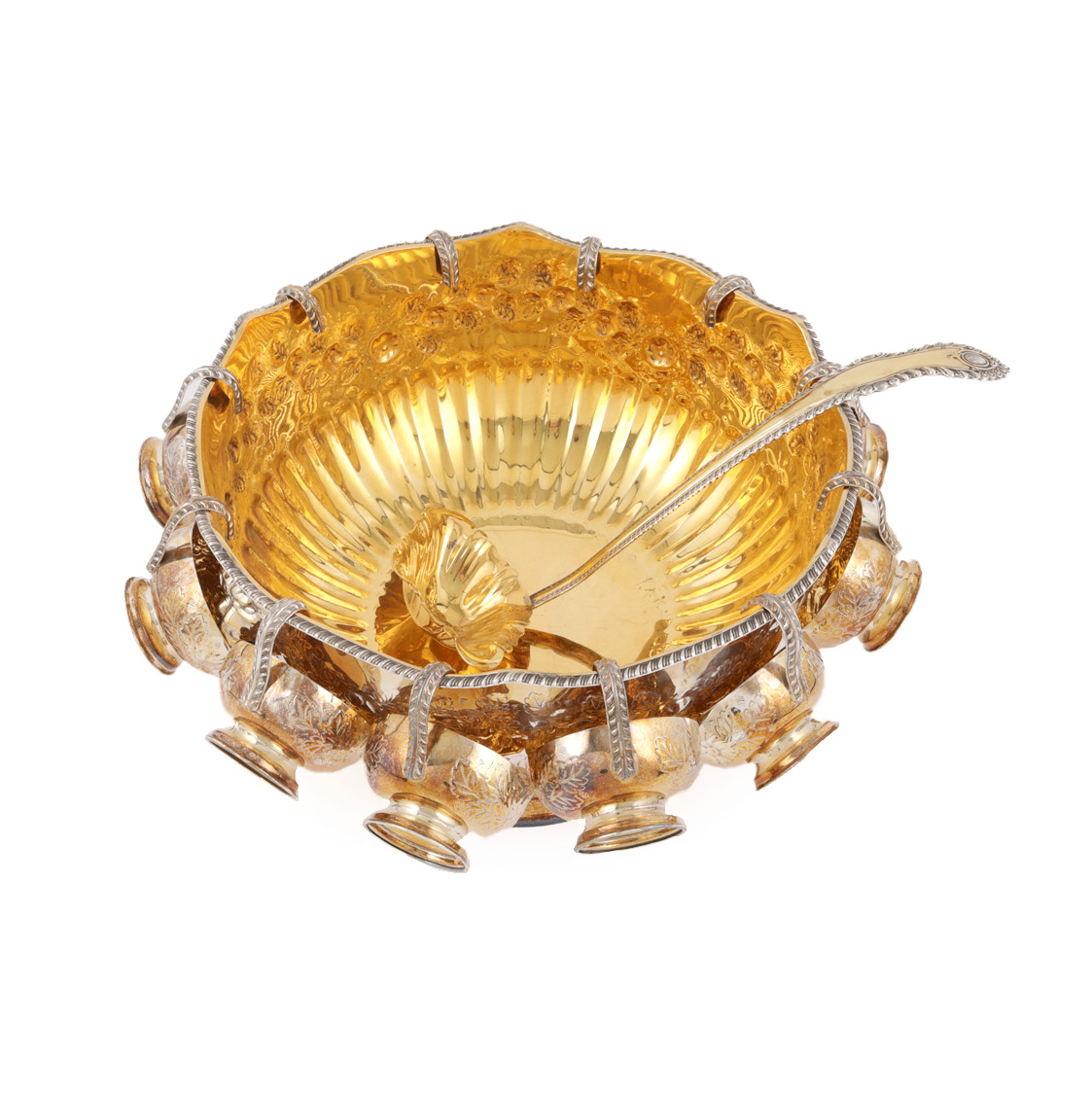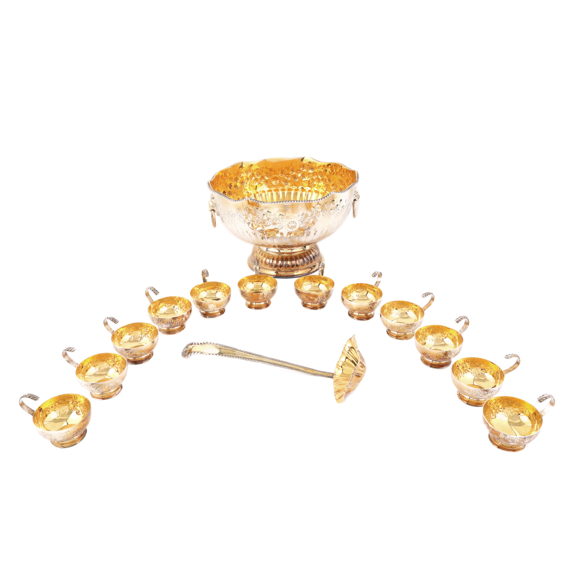 107. Serviciu pentru punch argintat, format din vas și 12 căni, cca. 1940-1950