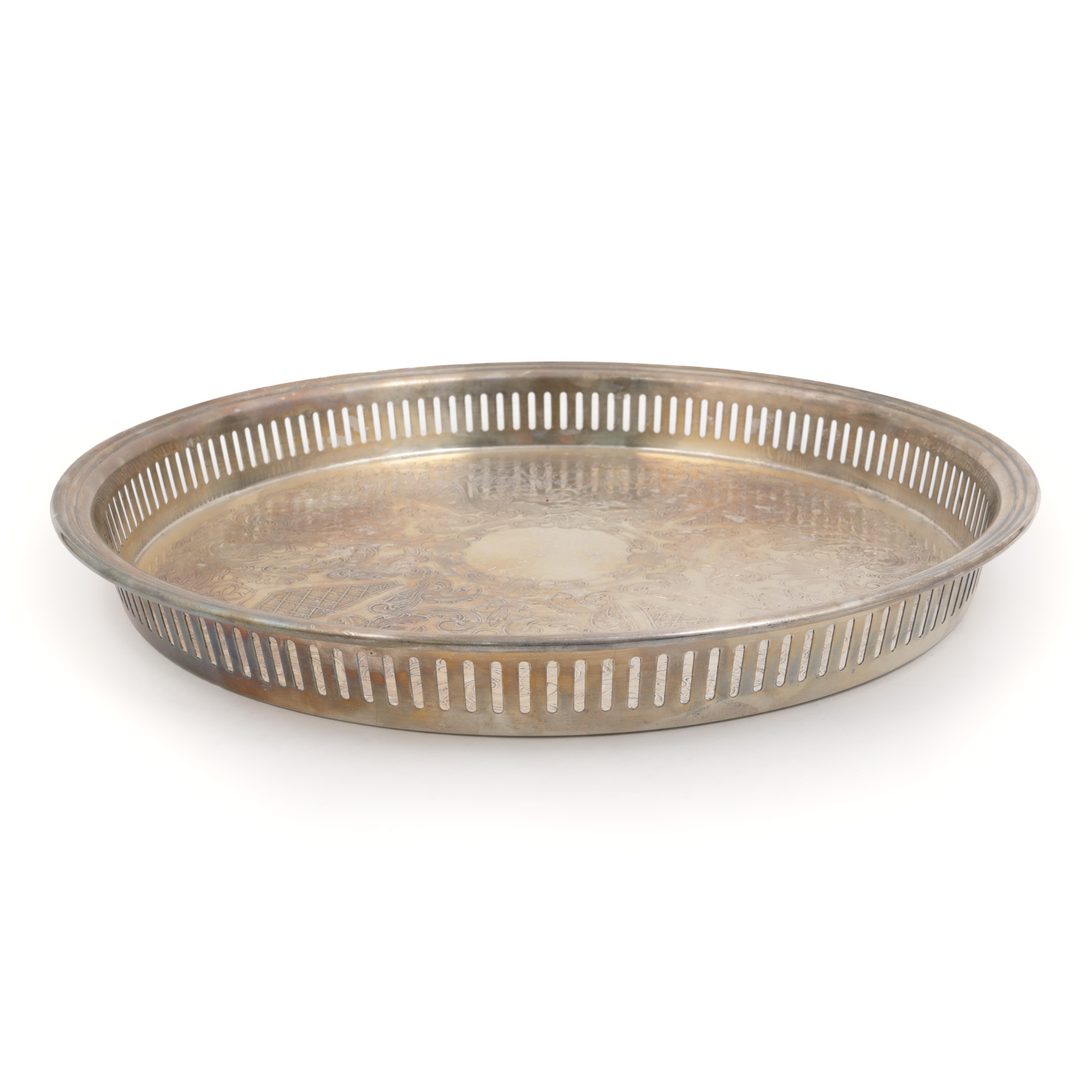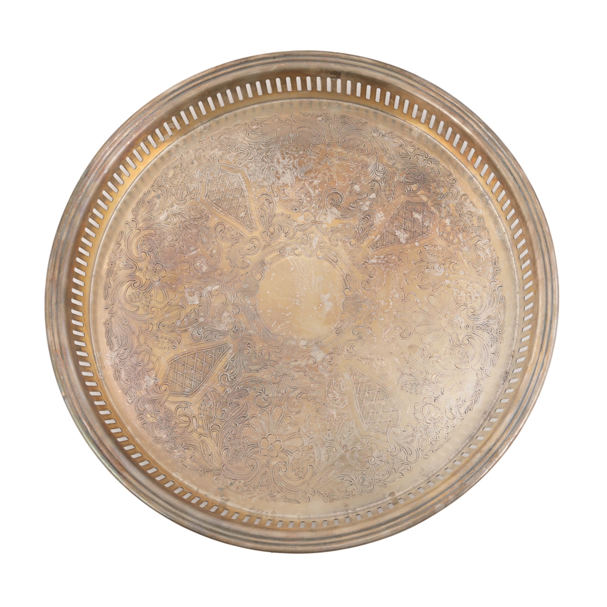 126. Tavă gravată cu trandafiri, cca. 1950