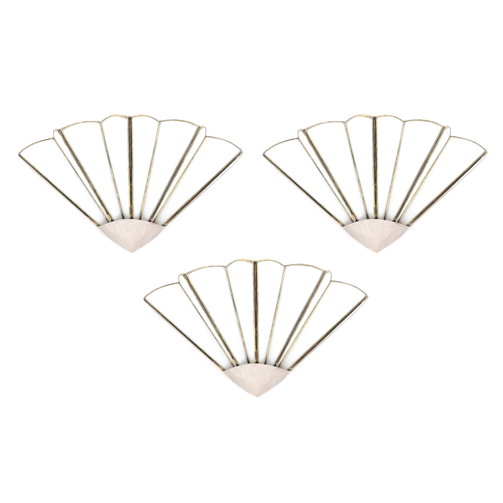 83. Trei aplice, în stil Art Deco, din bronz și sticlă ”verre américain”, realizate în formă de evantai, cca. 1940-1950