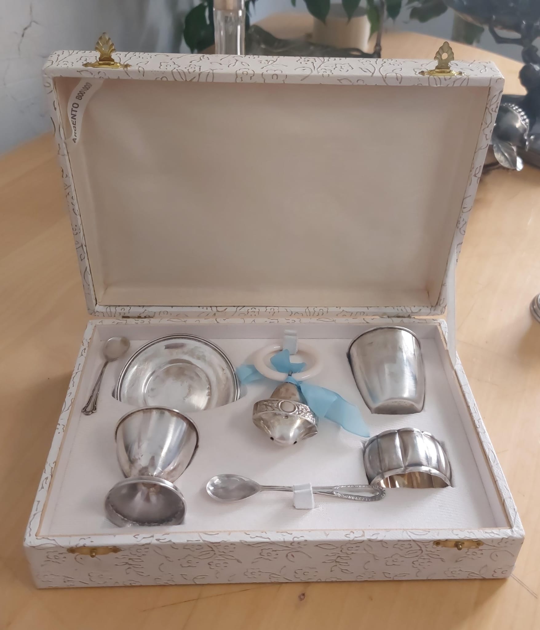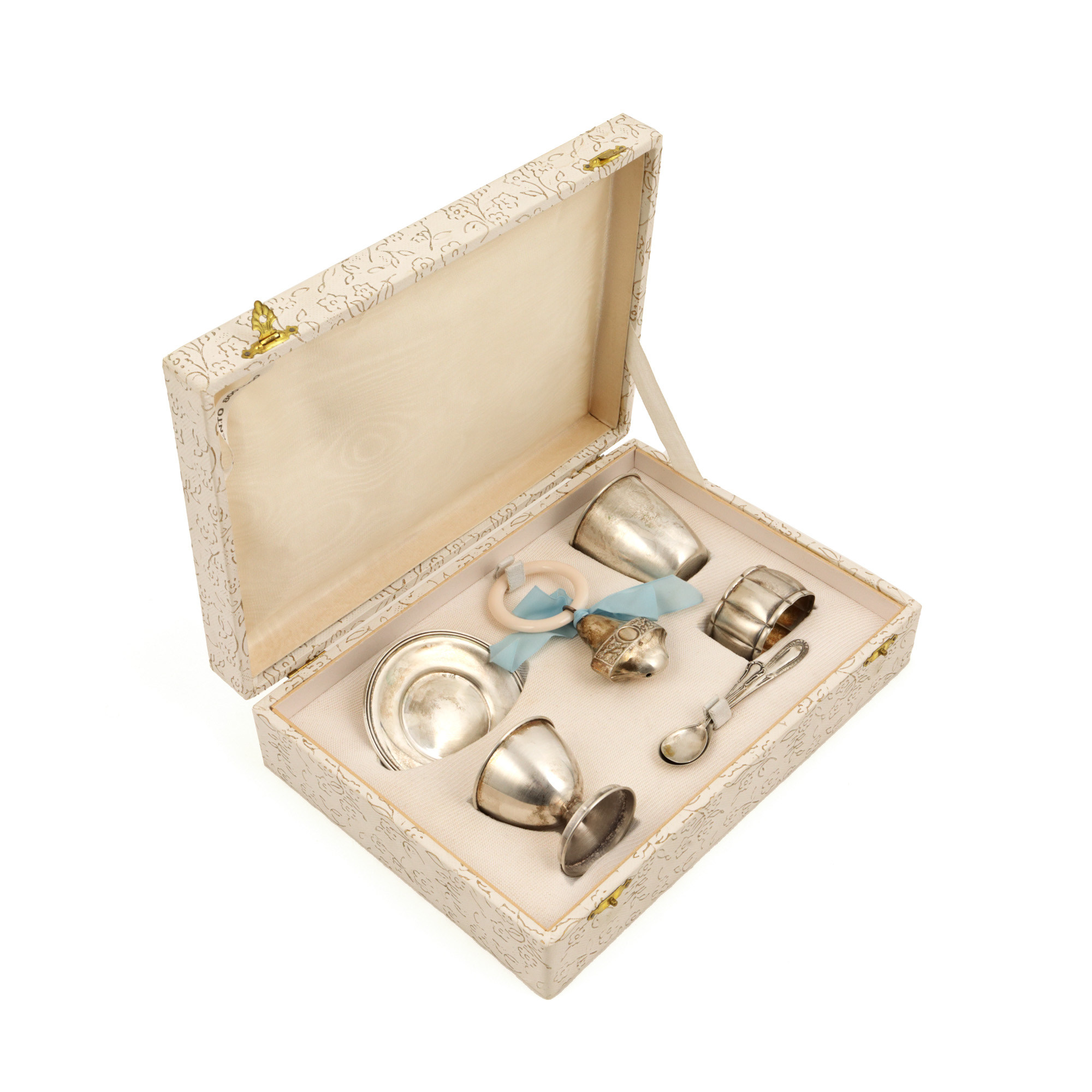 119. Trusou de botez, din argint, în cutia originală, prima jumătate a sec. XX