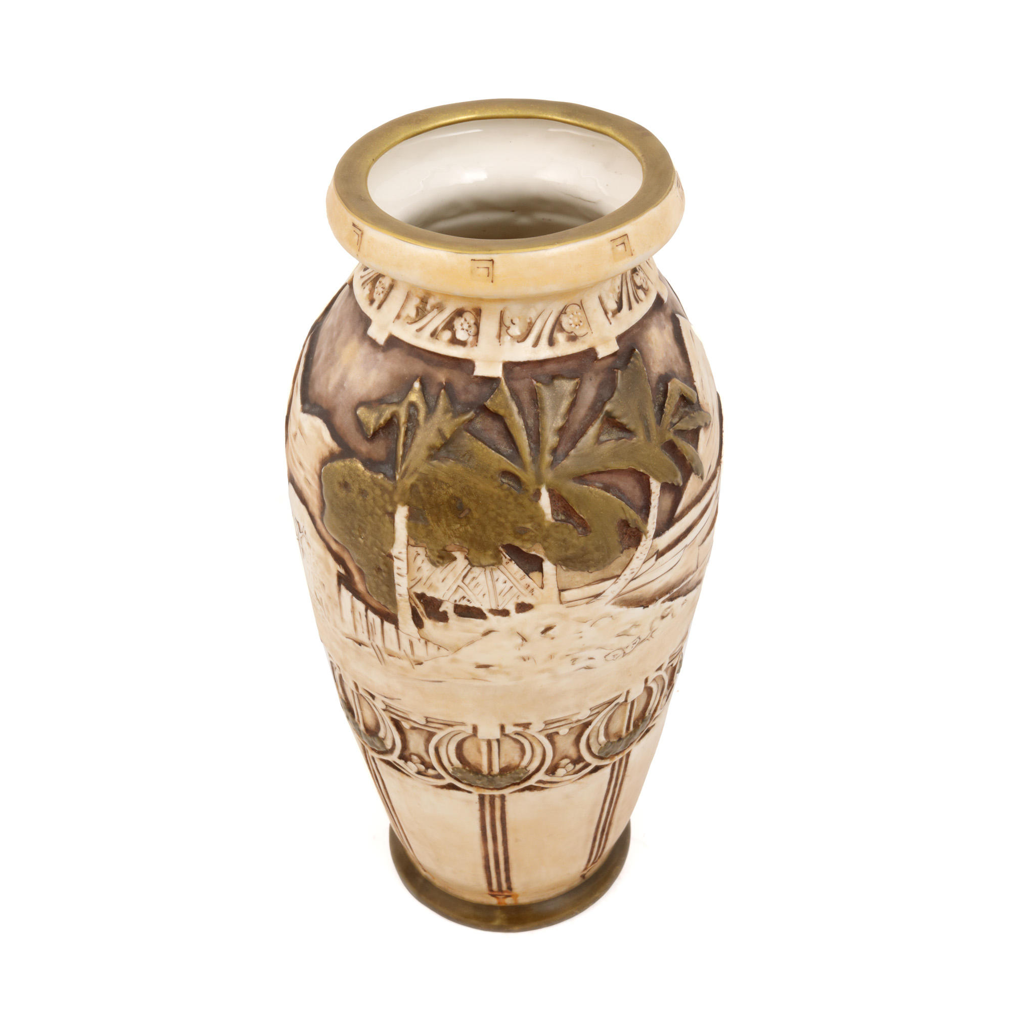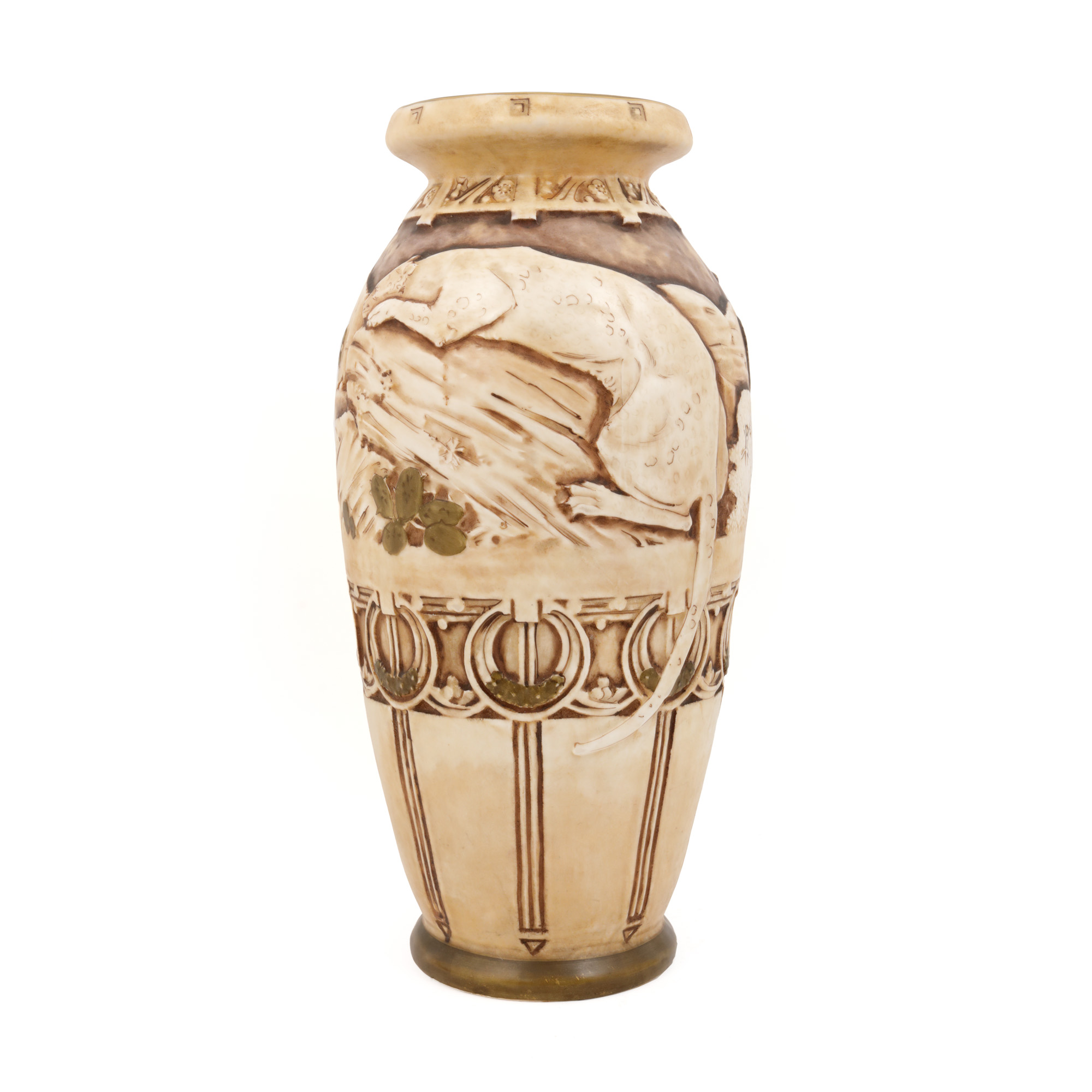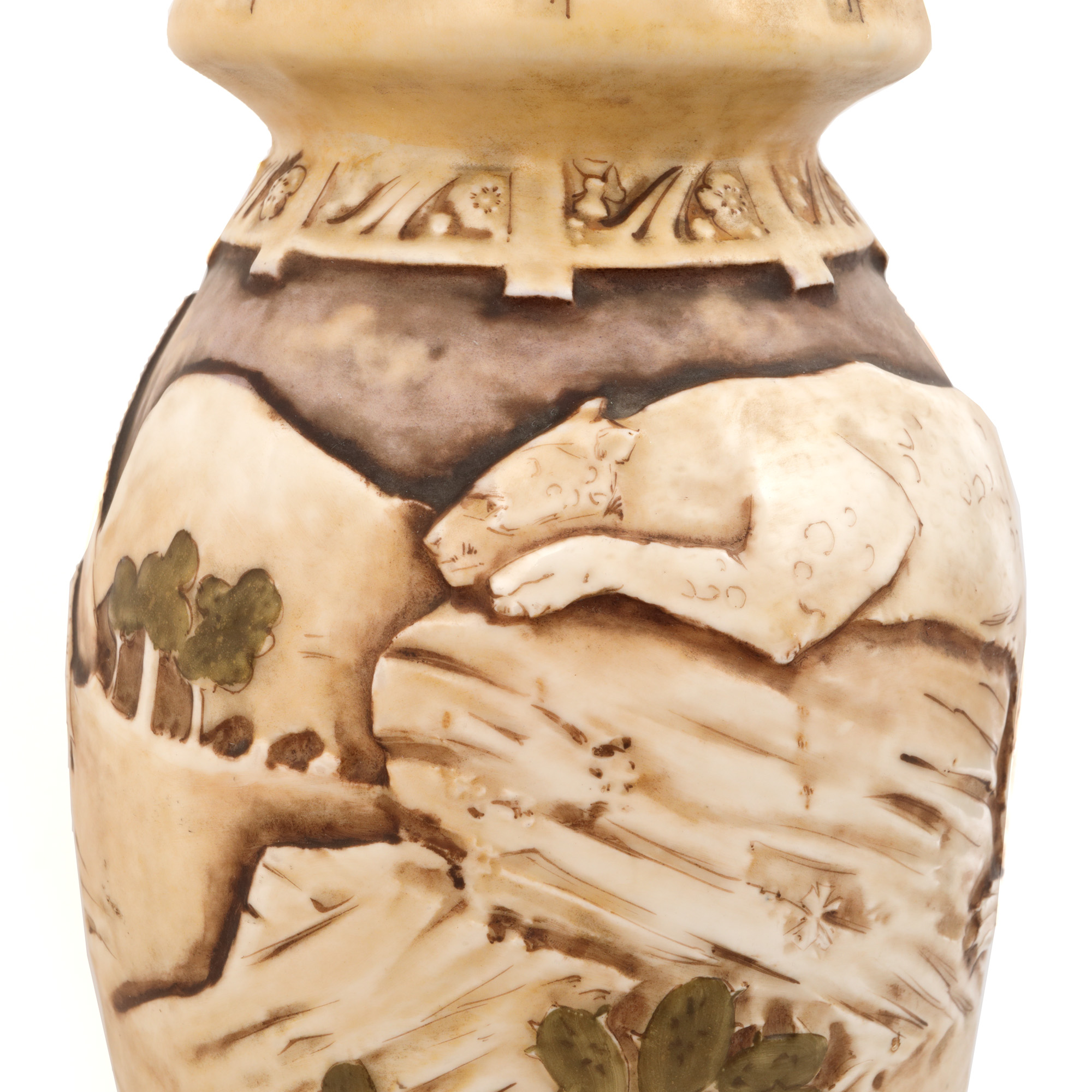 134. Vas Amphora, stil Secession, decorat cu leopard la pândă, cca. 1900, piesă rară