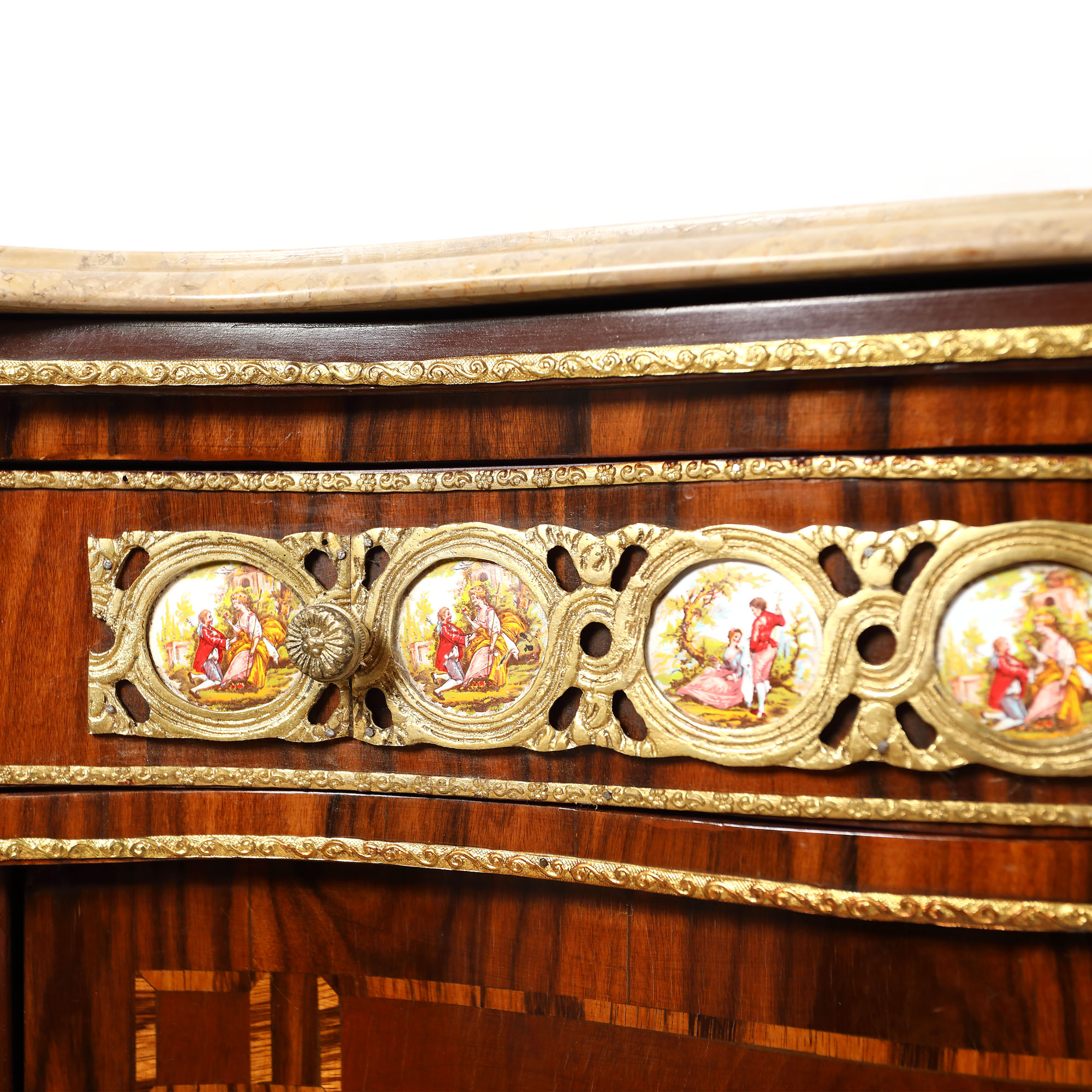 112. Comodă în manieră Napoleon III, ornată cu intarsii, medalioane pictate cu scene galante și decorațiuni din bronz doré [Sec. XX]