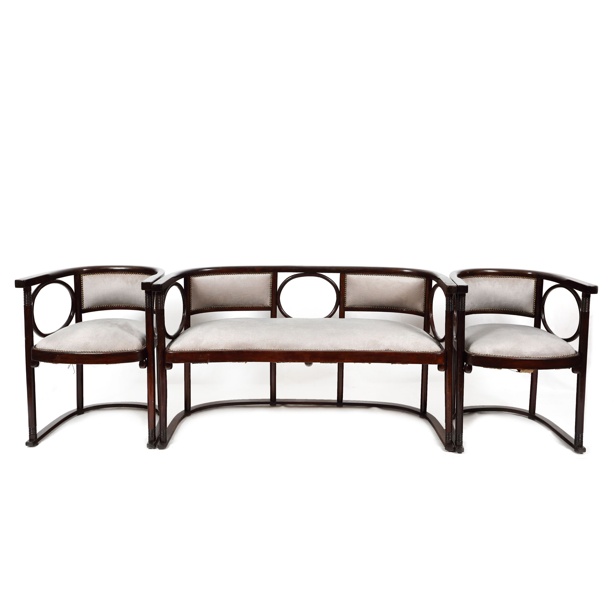 141. Garnitură de salon Joseph Hoffmann, formată din canapea și două fotolii, cca. 1900