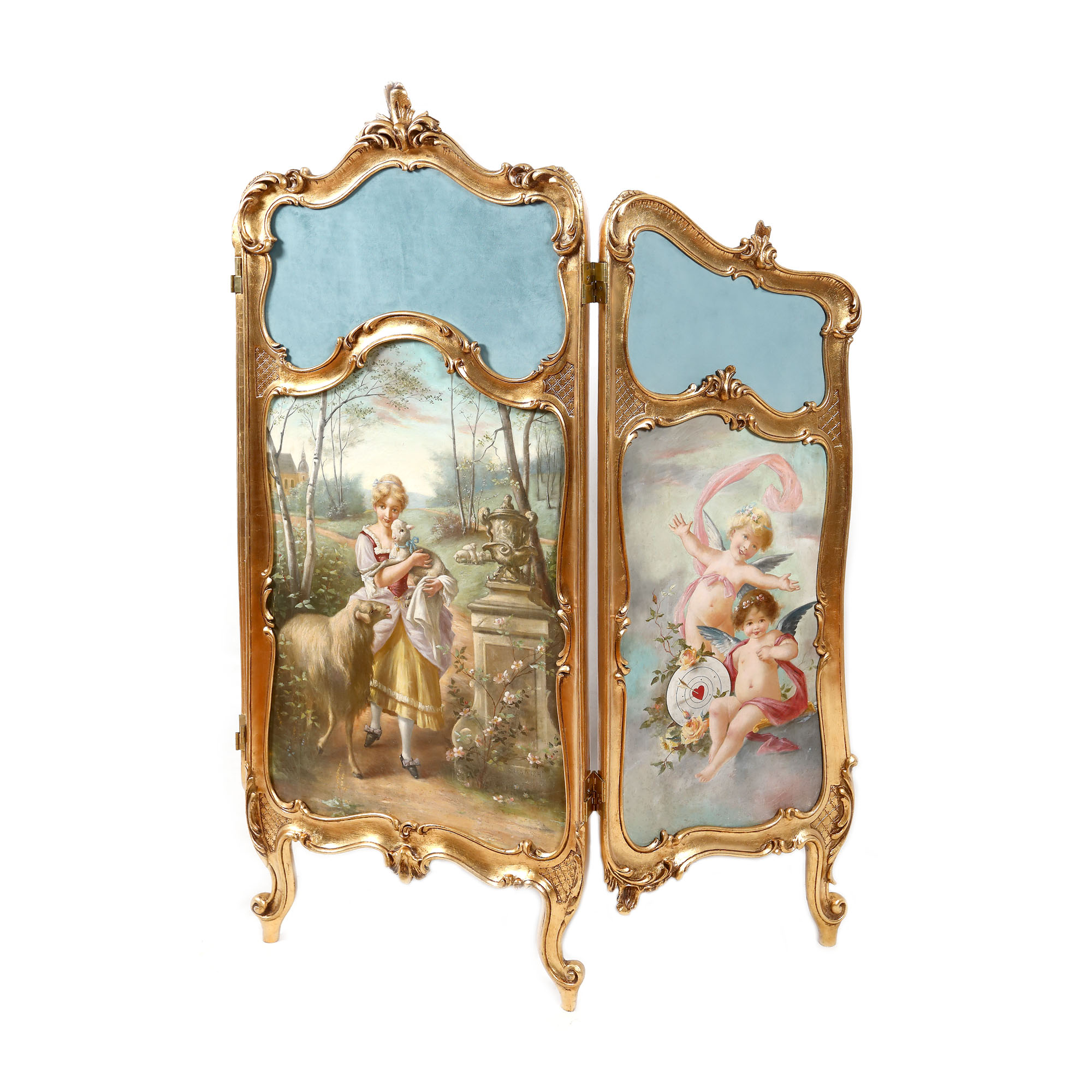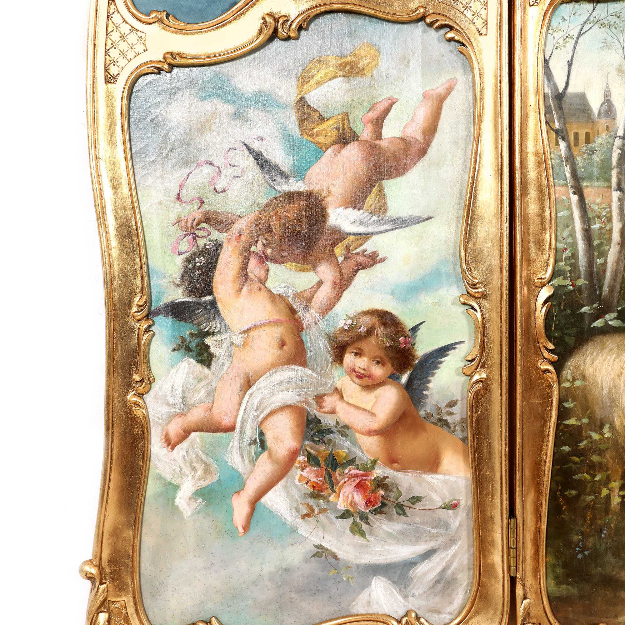 64. Panou tip paravan Rococo, ilustrat cu scenă campestră și amorași, sfârșitul sec. XVIII