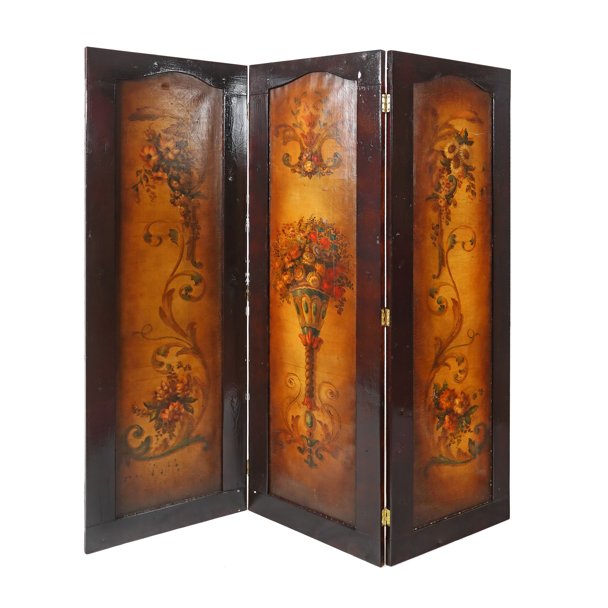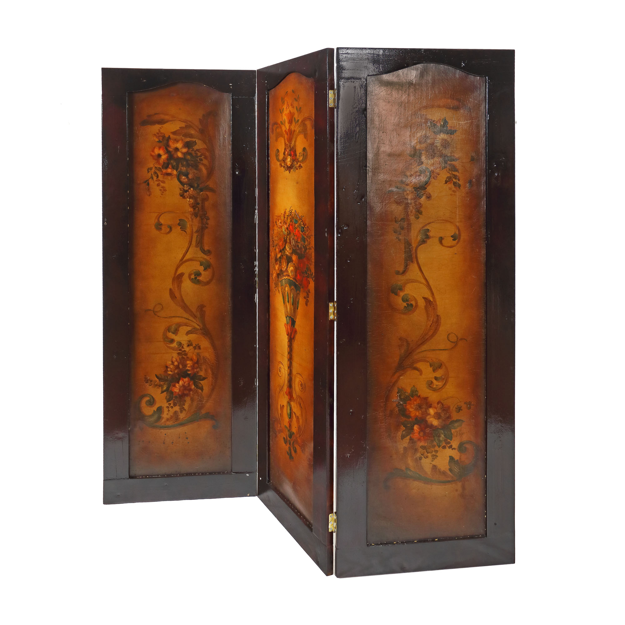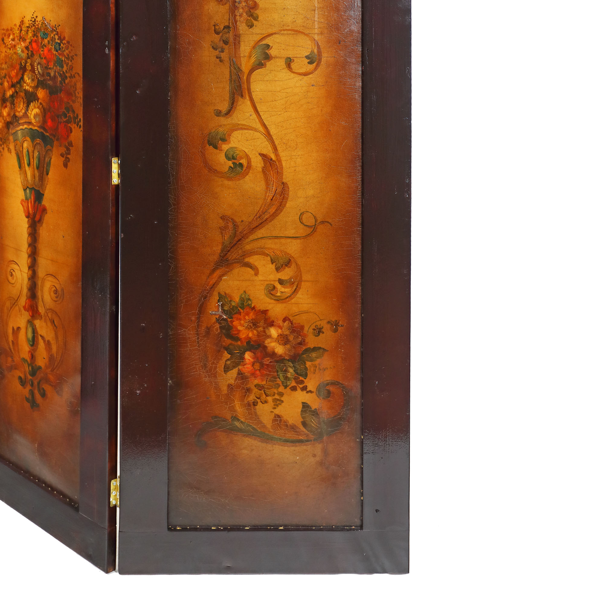 113. Paravan cu decoruri florale Renascentiste pictate pe piele de Cordoba, sec. XVIII, provine din colecția Prințesei Marina Sturdza