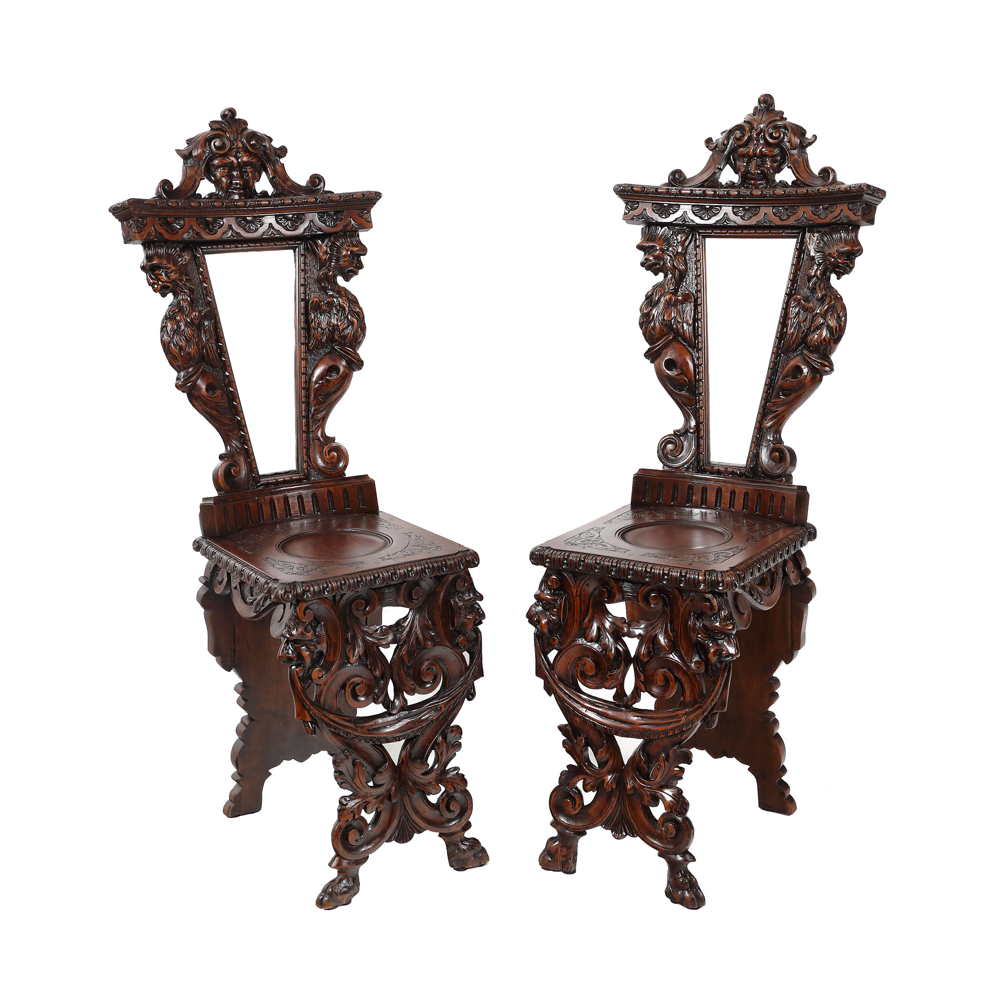 118. Pereche de scaune sgabello, în manieră Neo-Renascentistă, sfârșitul sec. XIX