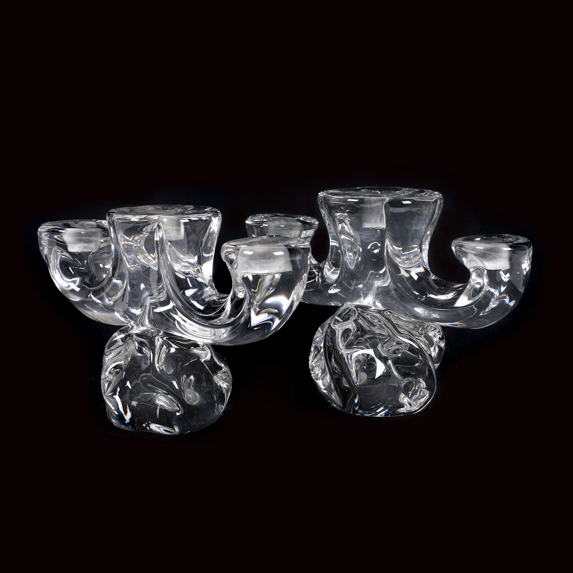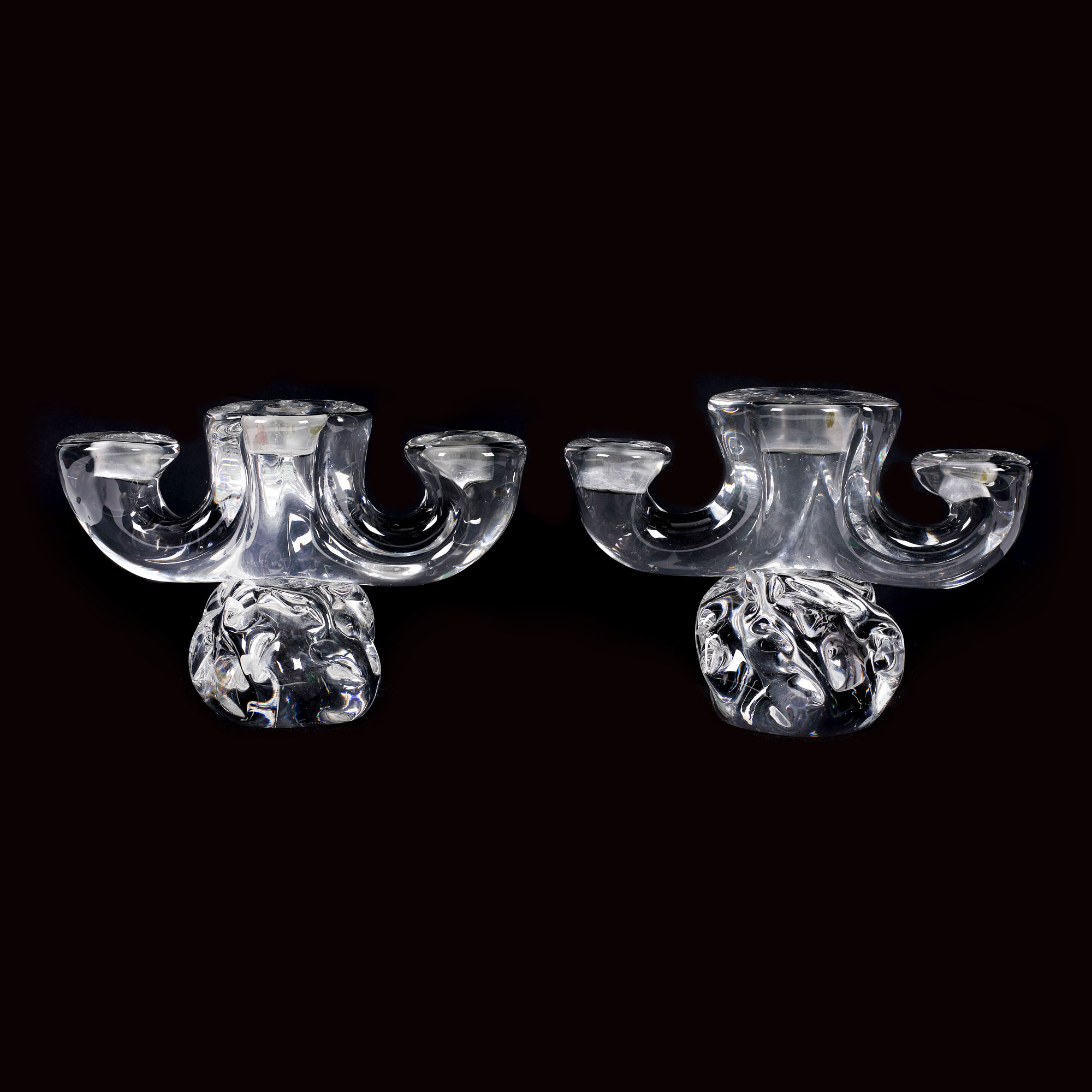 135. Pereche de sfeșnice Daum, din cristal, executată manual [A doua jumătate a sec. XX]