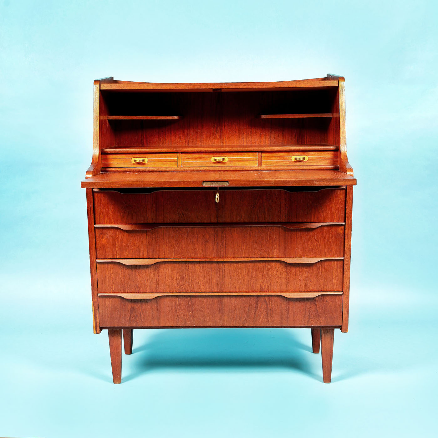 48. Secretaire danez Mid-century modern, din lemn de tec, cca. 1960