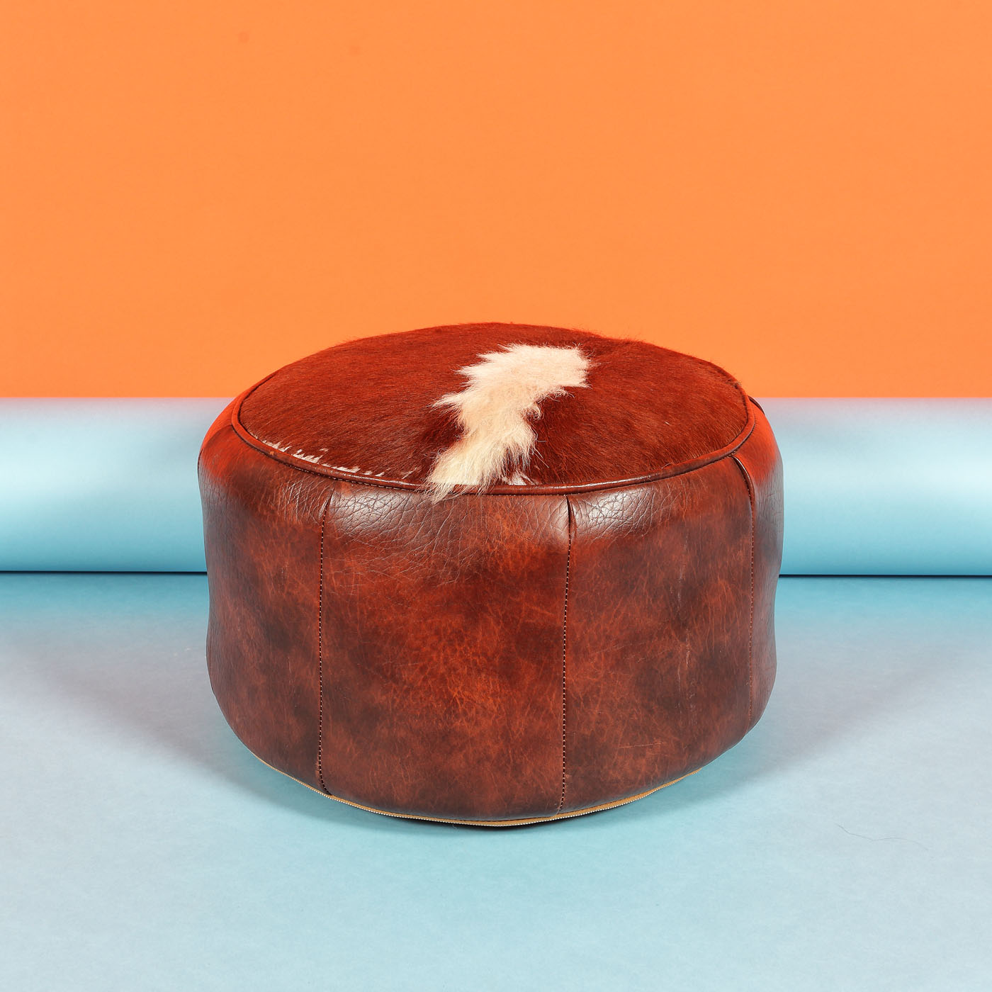 42. Taburet scandinav din piele și blană, cca. 1970