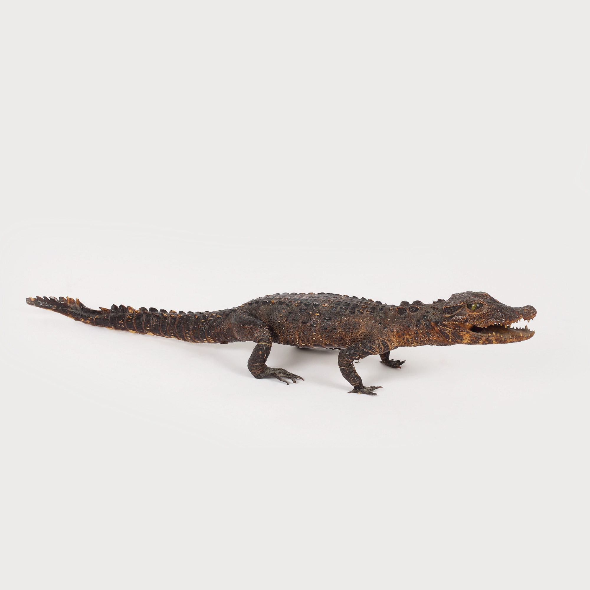 Crocodilul poate fi întâlnit în diverse mitologii, de la aceea a Egiptului antic, până la cea aztecă. Piesa de față reprezintă un trofeu de vânătoare.