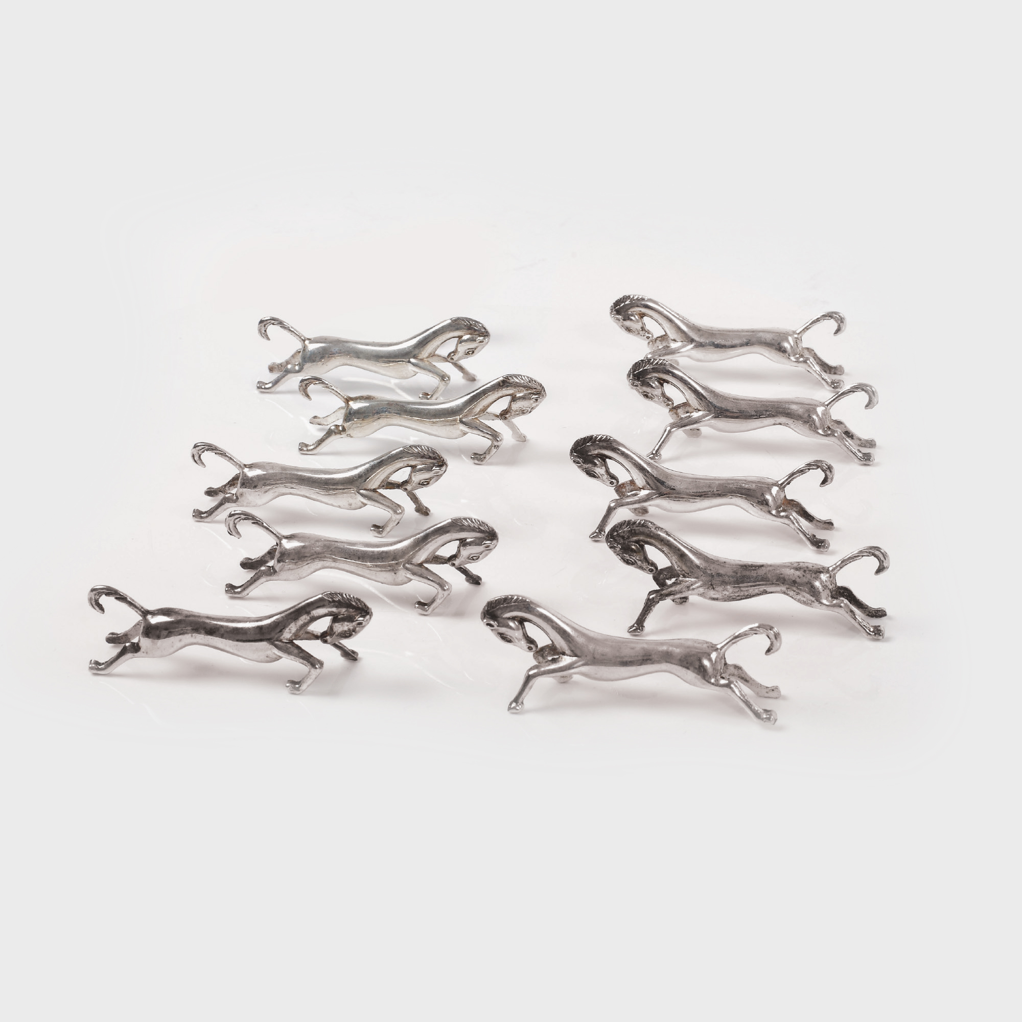 119. Set de suporturi argintate pentru tacâmuri, reprezentând cai în galop [Sfârşitul sec. XX]