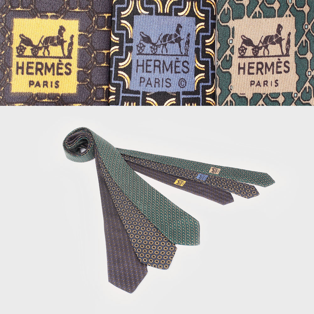 49. Distinsă colecție de cravate din mătase Hermes, anii '80, finisate manual, ediții de lux, tiraj limitat, înseriate, numerotate, piese de colecție