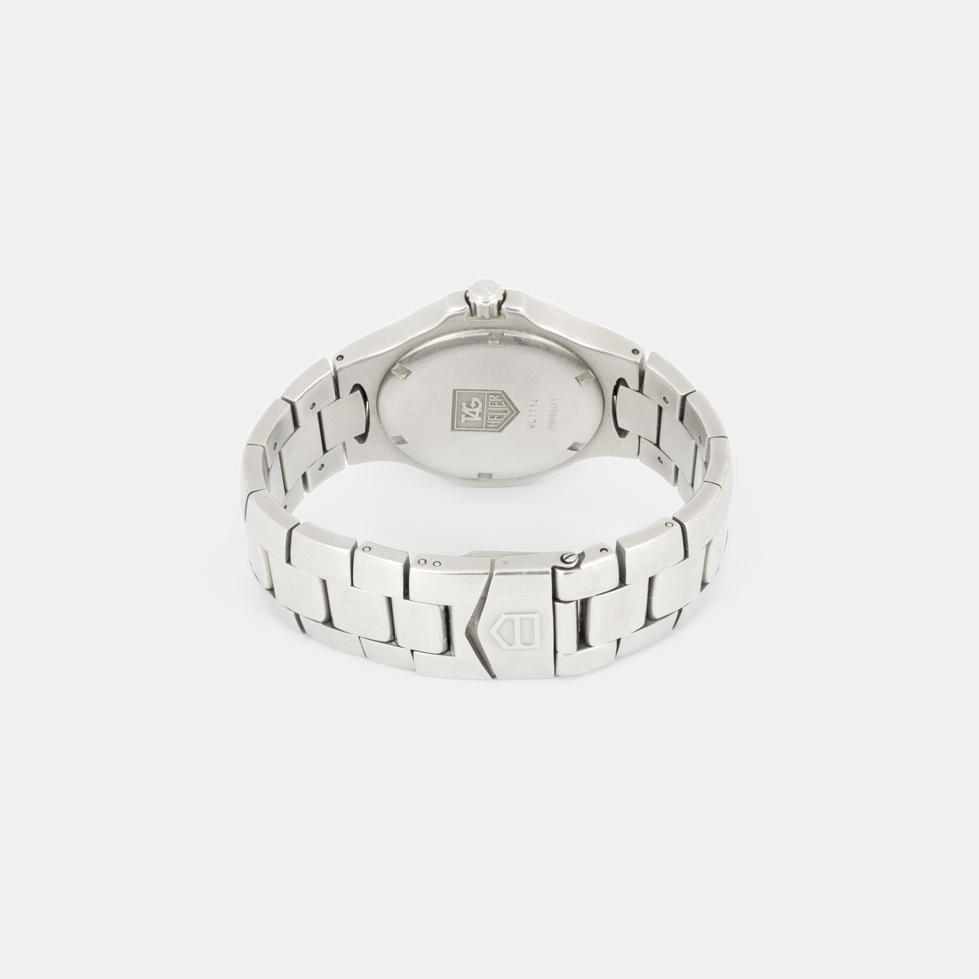 Ceas Tag Heuer Kirium, de mână, unisex, referință WL1110. Mecanism quartz, cadran de culoare argintiu, indici circulari aplicați, cu un registru pentru dată în dreptul orei 3. Brățară originală, din oțel, cu sistem de închidere de tip deployant.