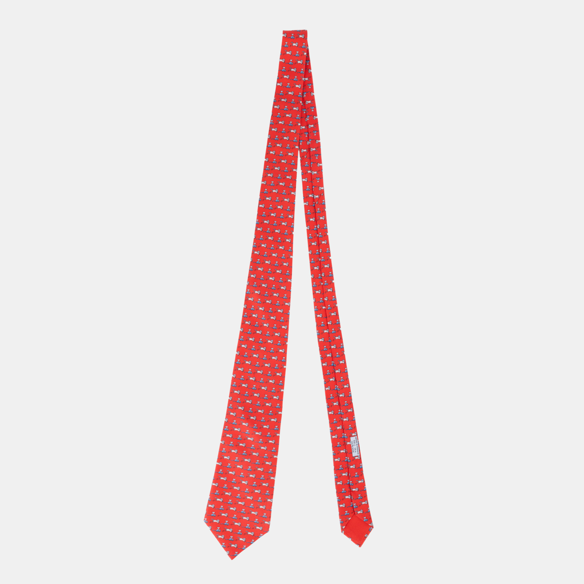 103. Cravată Hermès, din mătase, decorată cu animale