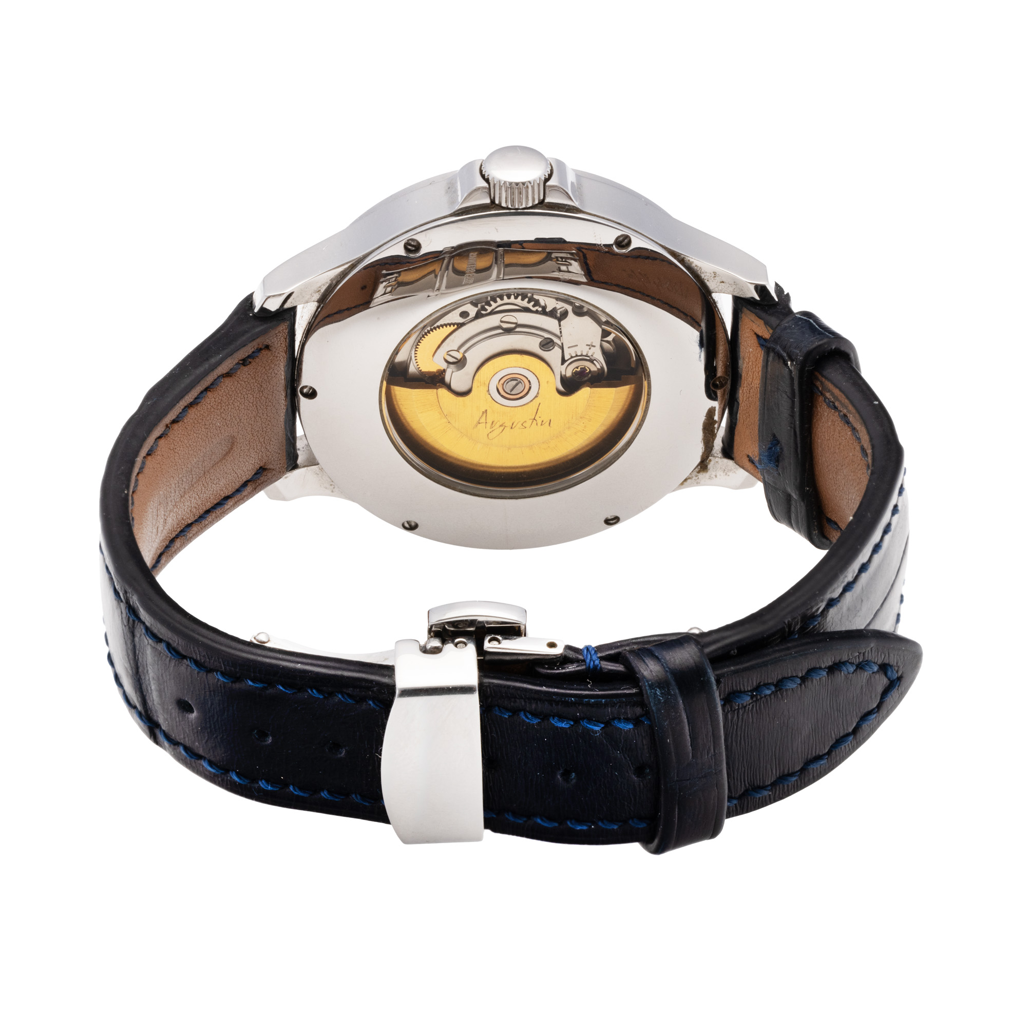 Ceas Augustin Poarta Sărutului, de mână, bărbătesc. Mecanism automatic, calibrul 2840, anterior vitrat. Cadran pictat manual, indici cu numerale romane. Curea din piele, de culoare albastru închis, cu sistem de închidere de tip deployant. Accesorii: cutia originală, certificat de garanție.