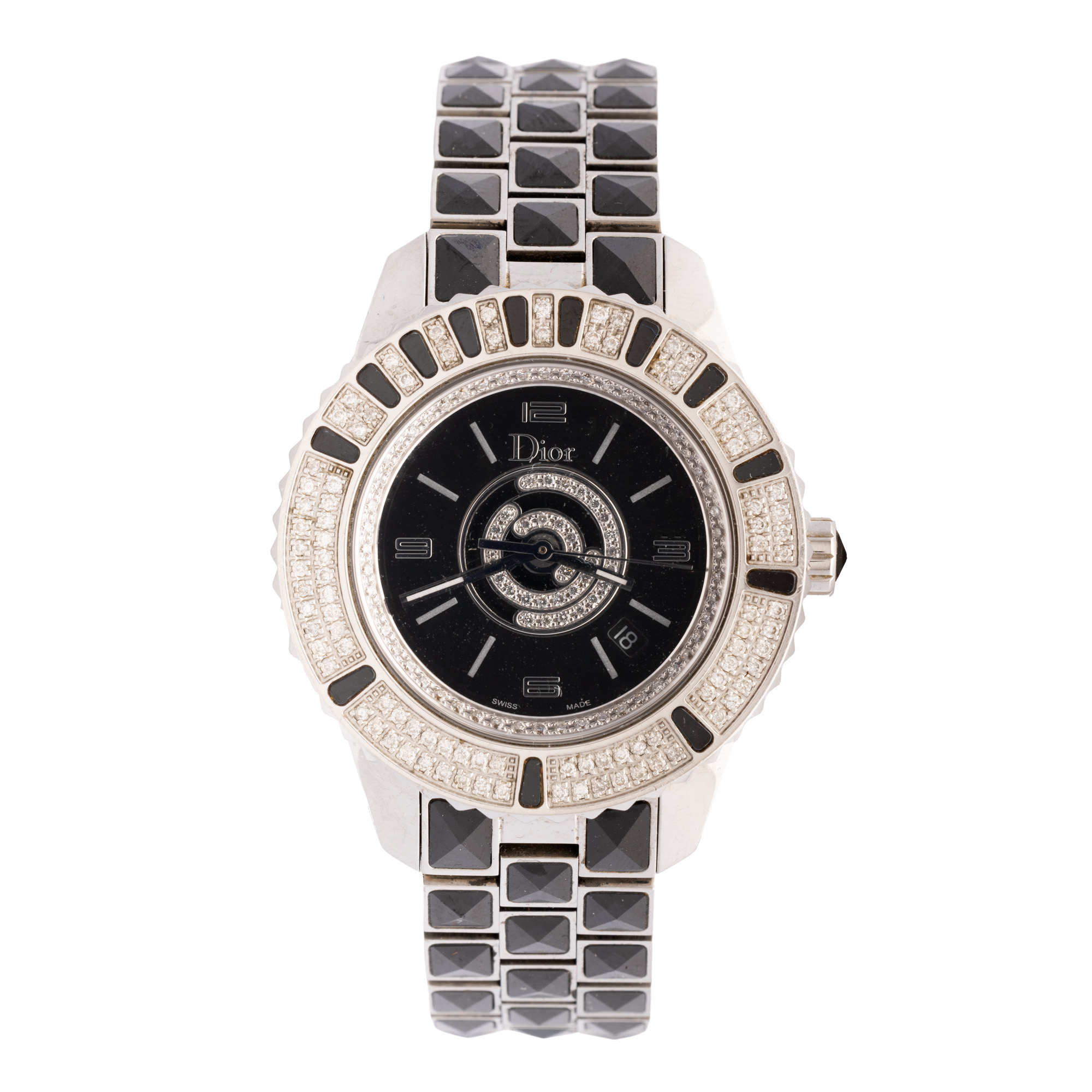 112. Ceas Dior Christal, din oțel cu diamante, de mână, de damă [cca. 2012]