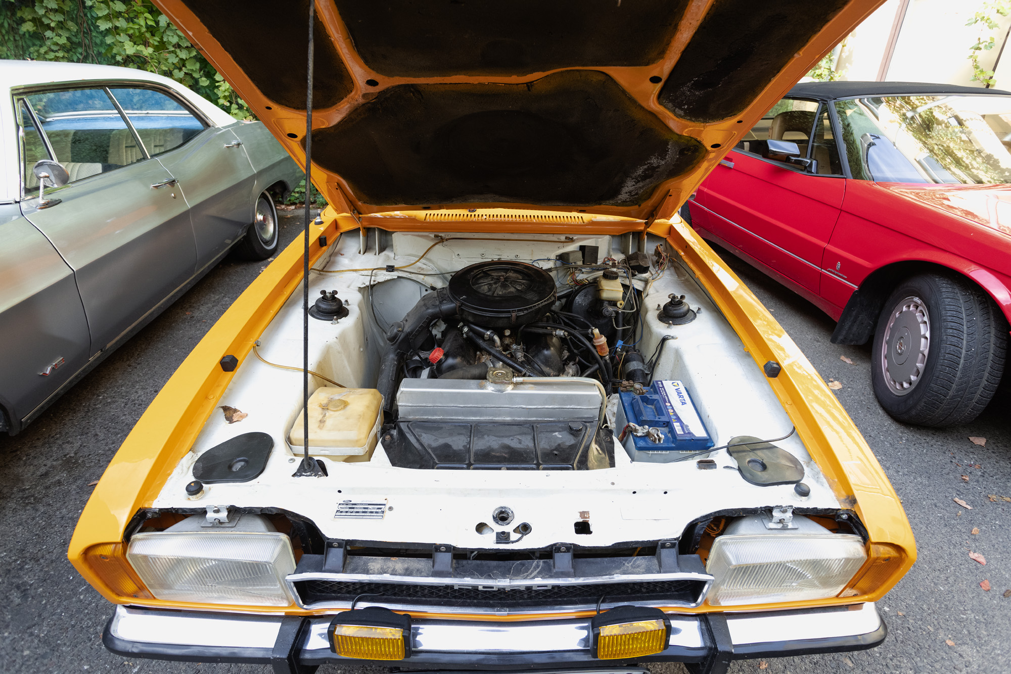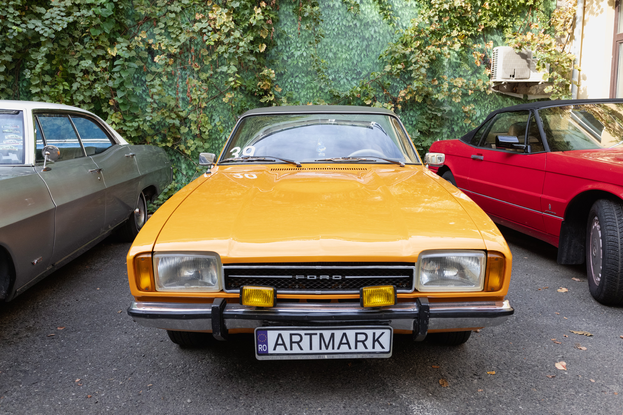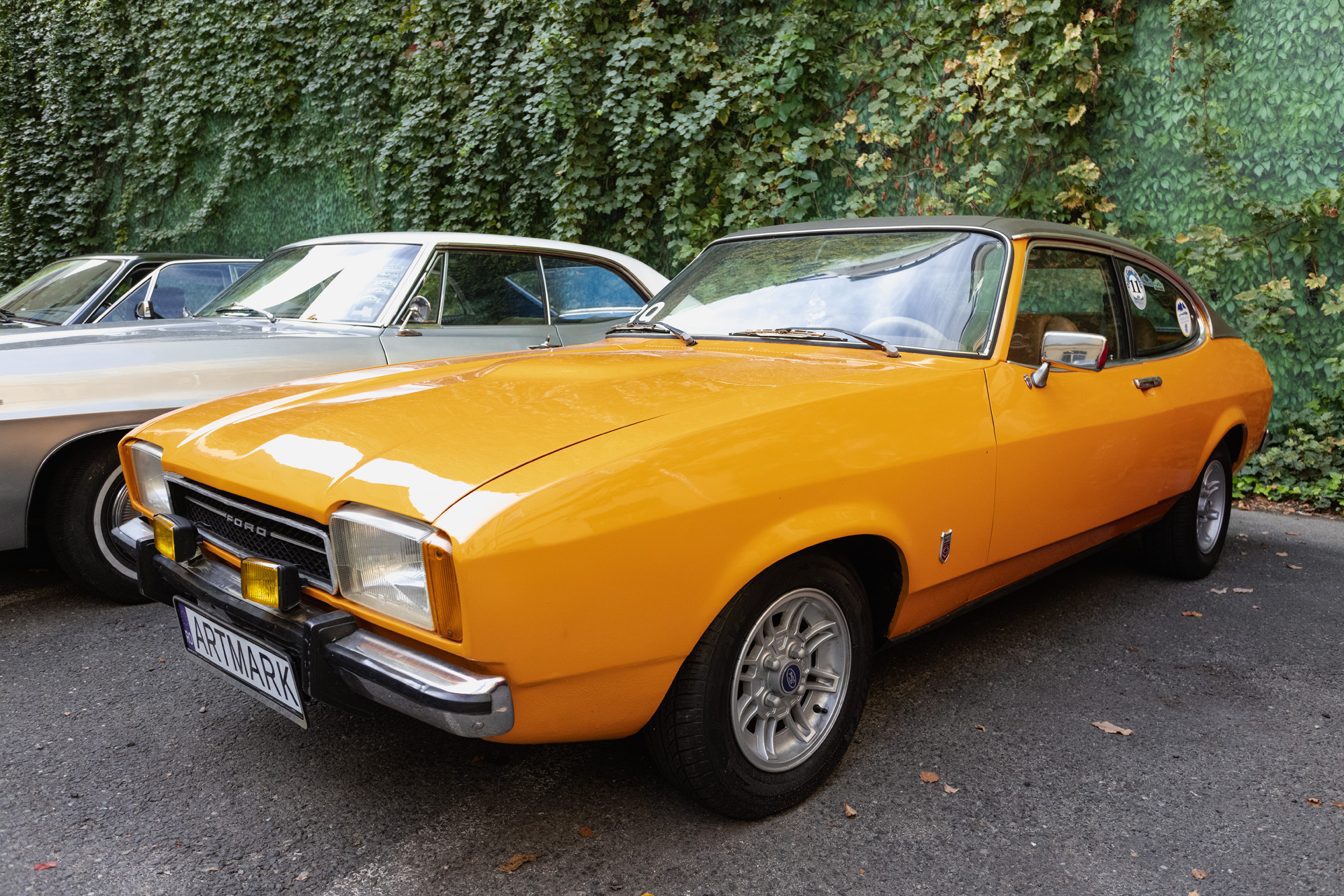 Automobil Ford Capri Ghia. Este unul dintre cele mai cunoscute coupeuri ale epocii și un real succes de piață pentru compania Ford, a fost chiar primul automobil cu caroserie de tip hatchback al mărcii. O mașină zveltă, fiabilă și spațioasă, se pretează utilizării zilnice dar se adaptează ușor la escapade sportive. Interiorul este elegant dar cu accente sportive, scaunele bine profilate sunt îmbrăcate într-o combinație de piele și material textil. Caroseria are plafonul acoperit cu vinilin și dispune de trapă mobilă. Funcționează și arată foarte bine, deține Atestat de Vehicul Istoric, a participat la numeroase parade specifice.
