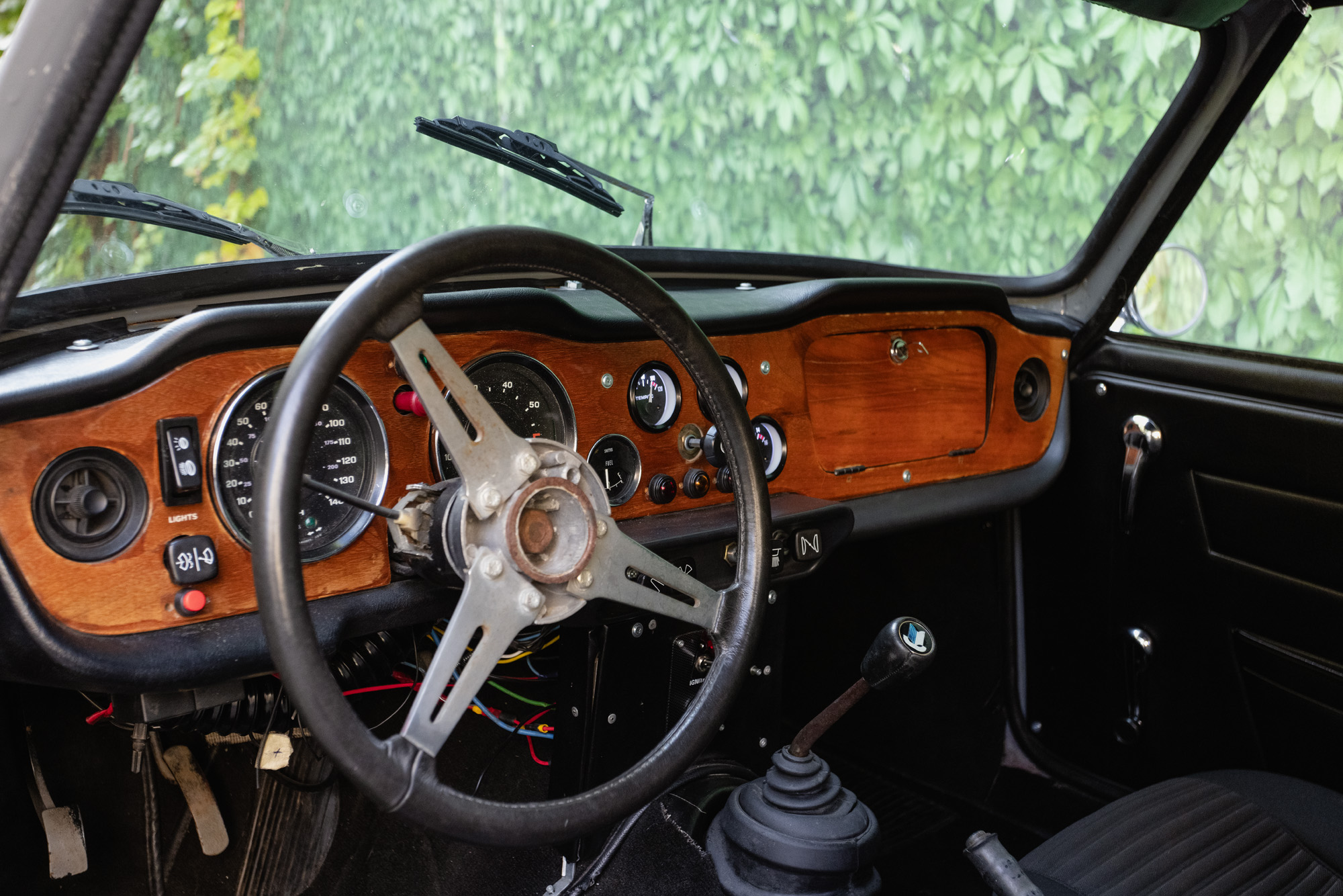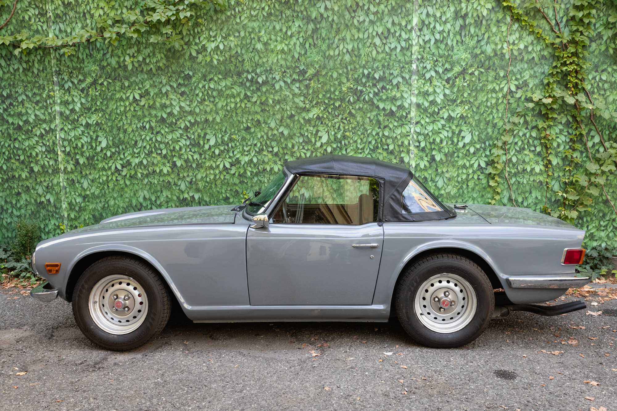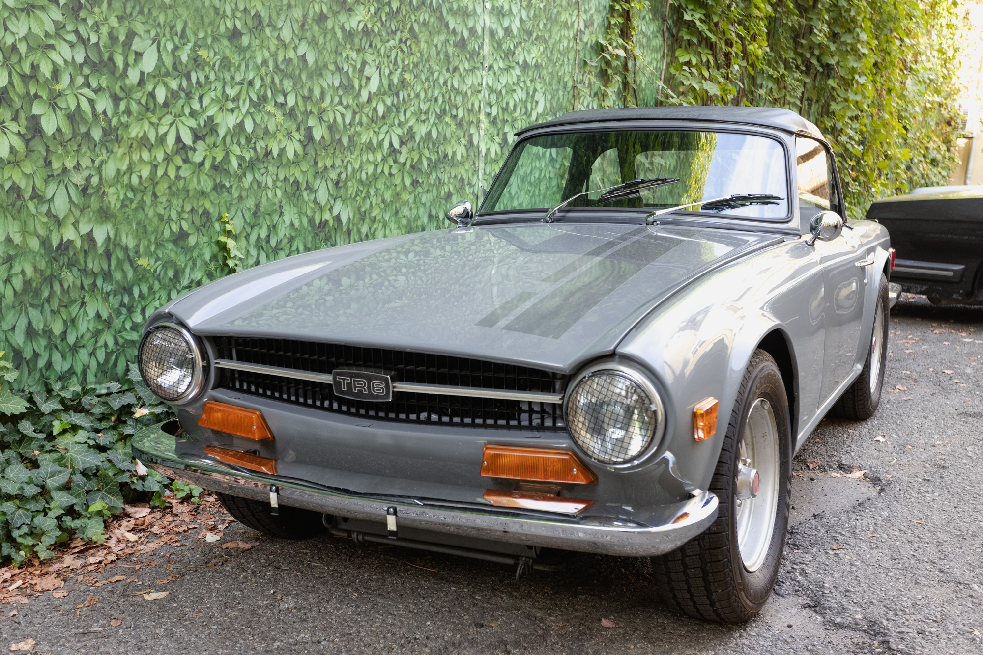 Automobil Triumph TR6. Este un cabrio sportiv, cu performanțe remarcabile datorate combinației dintre un motor puternic și dimensiuni și greutate reduse. Are un interior spartan care-i întregește alura atletică. Mașina arată și funcționează foarte bine, deține Atestat de Vehicul istoric